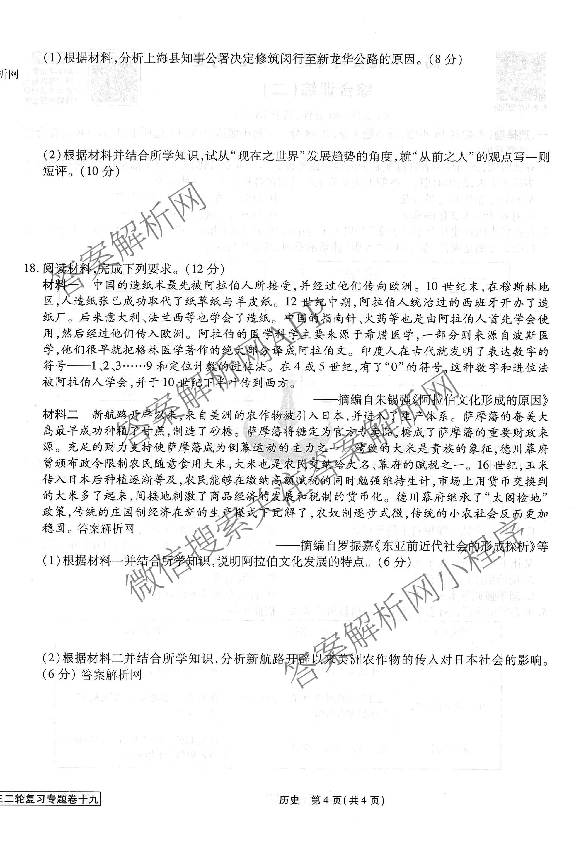 2026届衡水金卷先享题·高三二轮复习专题卷历史(十九)19试题,目前衡水金卷先享题答案网已经汇总了2026届衡水金卷先享题·高三二轮复习专题卷历史(十九)19试题的各科答案和试卷,获取更多衡水金卷先享题答案解析,请在关注本站。
