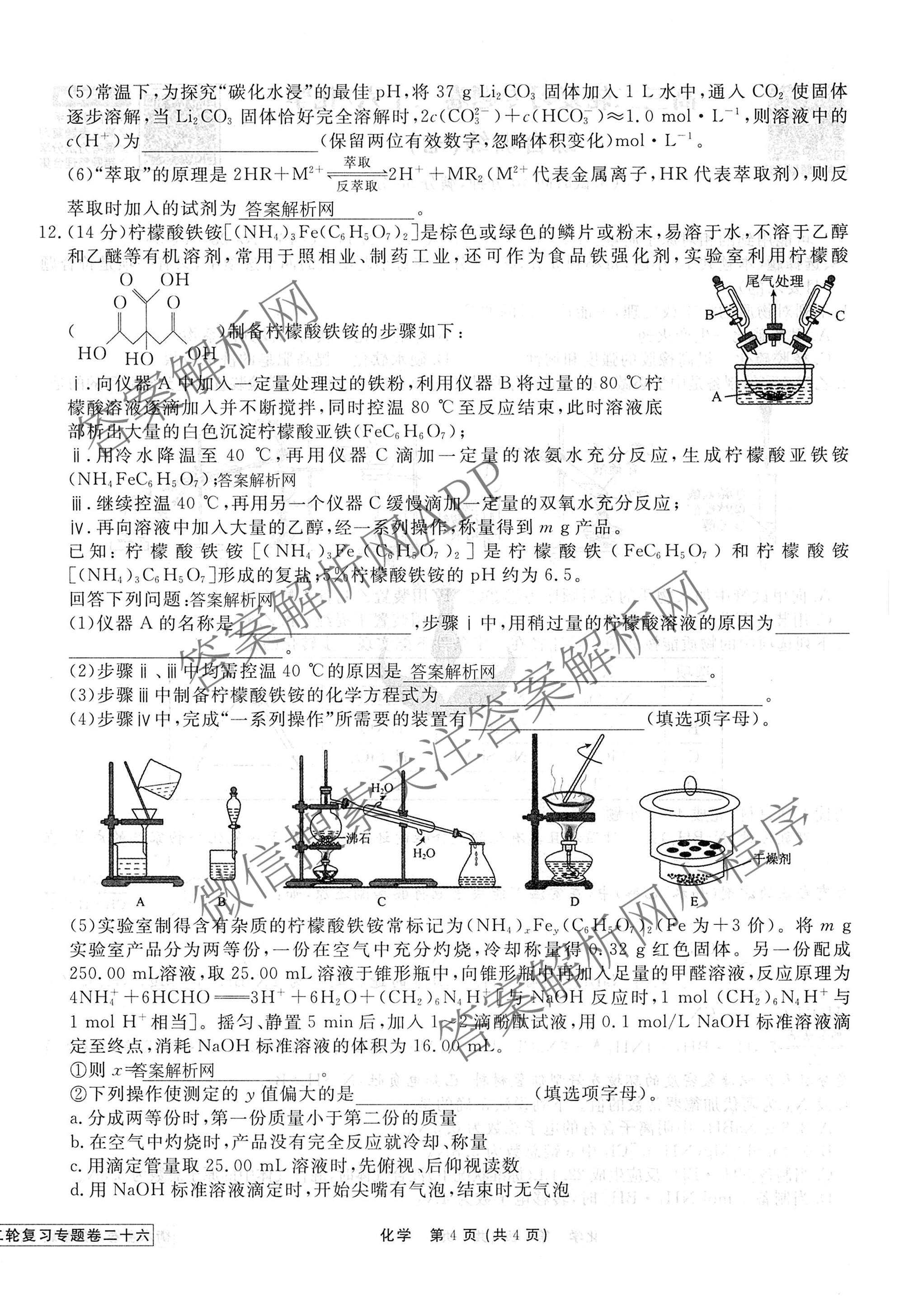 2026届衡水金卷先享题·高三二轮复习专题卷化学(二十六)26试题,目前衡水金卷先享题答案网已经汇总了2026届衡水金卷先享题·高三二轮复习专题卷化学(二十六)26试题的各科答案和试卷,获取更多衡水金卷先享题答案解析,请在关注本站。