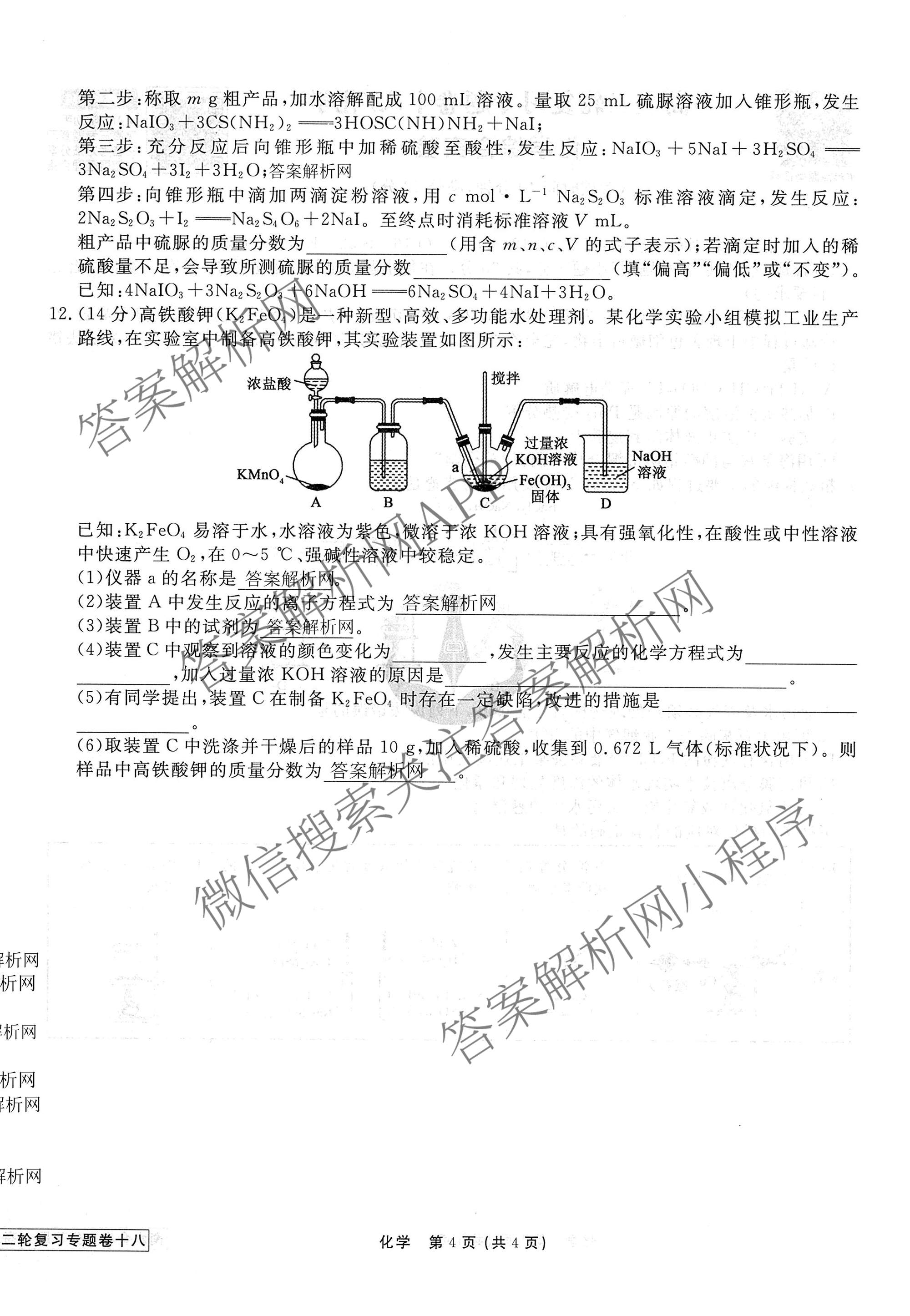 2026届衡水金卷先享题·高三二轮复习专题卷化学(十八)18试题,目前衡水金卷先享题答案网已经汇总了2026届衡水金卷先享题·高三二轮复习专题卷化学(十八)18试题的各科答案和试卷,获取更多衡水金卷先享题答案解析,请在关注本站。