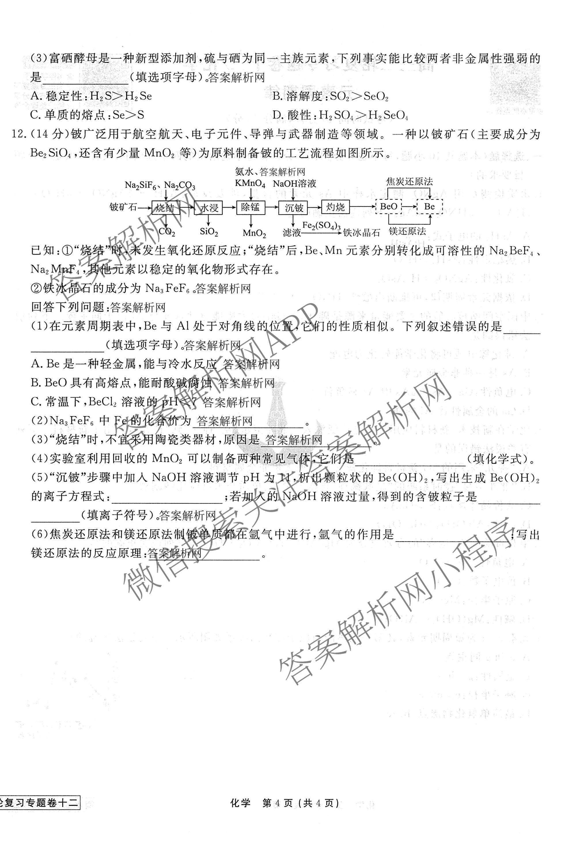 2026届衡水金卷先享题·高三二轮复习专题卷化学(十二)12试题,目前衡水金卷先享题答案网已经汇总了2026届衡水金卷先享题·高三二轮复习专题卷化学(十二)12试题的各科答案和试卷,获取更多衡水金卷先享题答案解析,请在关注本站。
