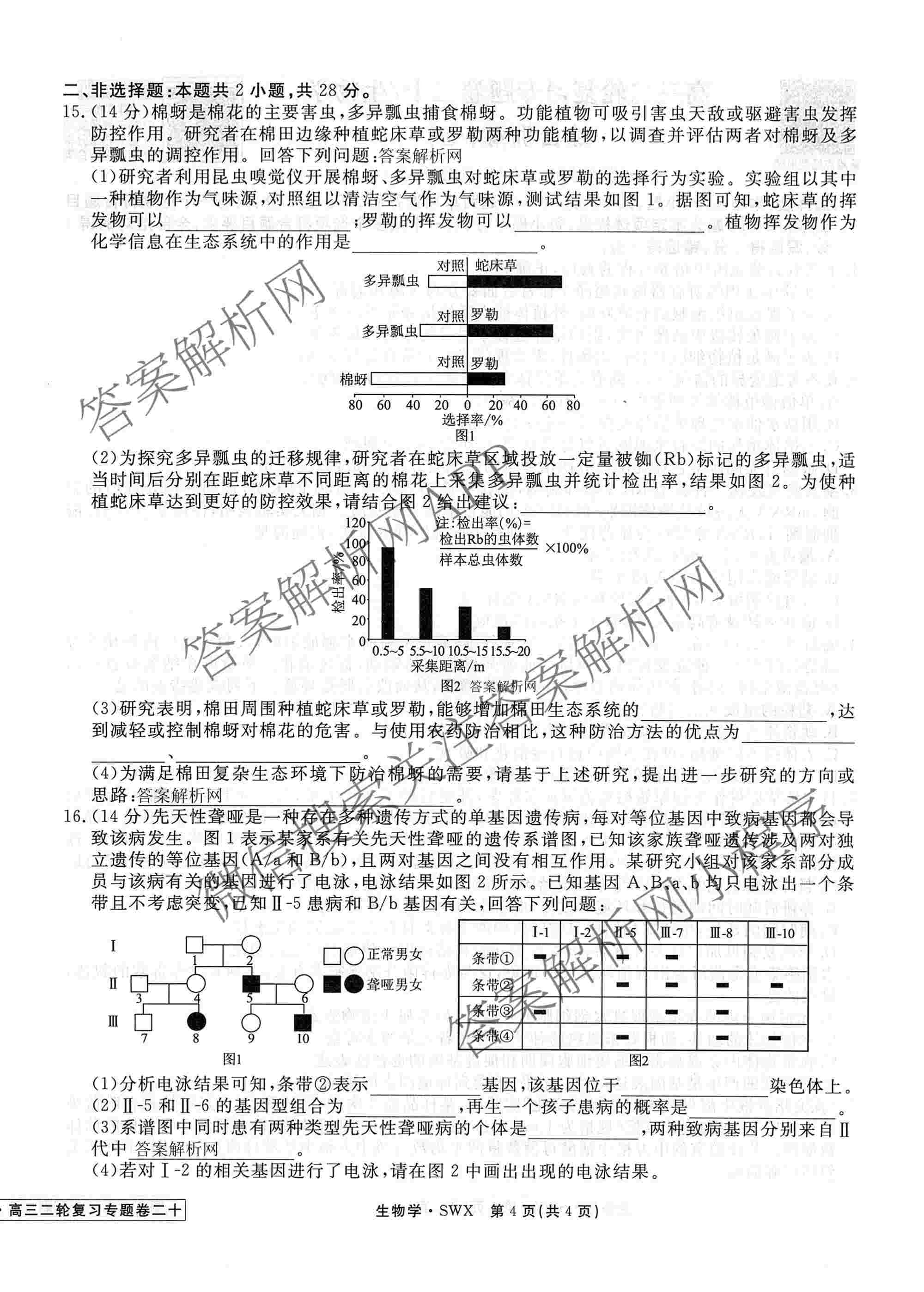 2026届衡水金卷先享题·高三二轮复习专题卷生物(SWX)(二十)20试题,目前衡水金卷先享题答案网已经汇总了2026届衡水金卷先享题·高三二轮复习专题卷生物(SWX)(二十)20试题的各科答案和试卷,获取更多衡水金卷先享题答案解析,请在关注本站。