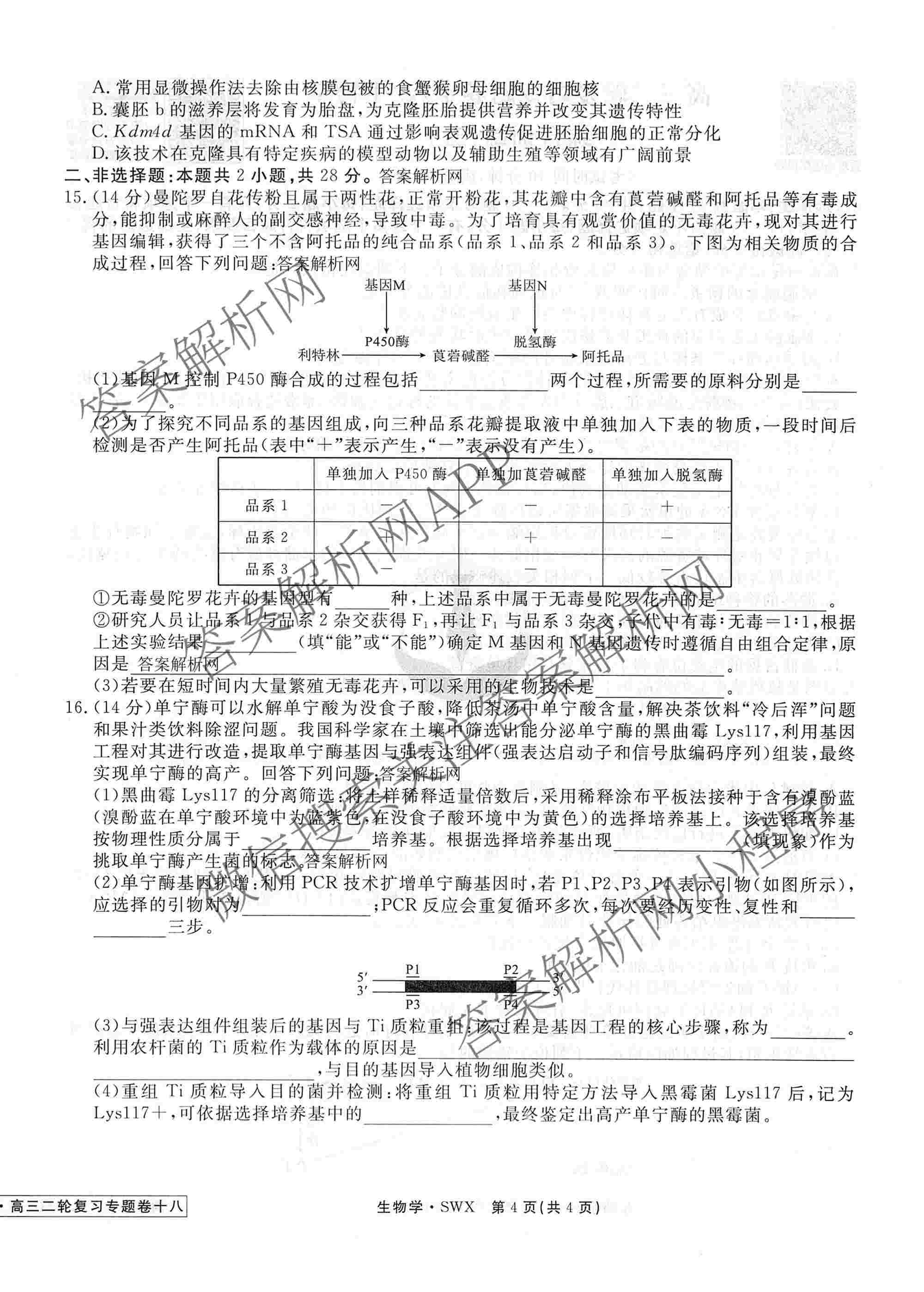 2026届衡水金卷先享题高三二轮复习专题卷生物(SWX)(十八)18试题