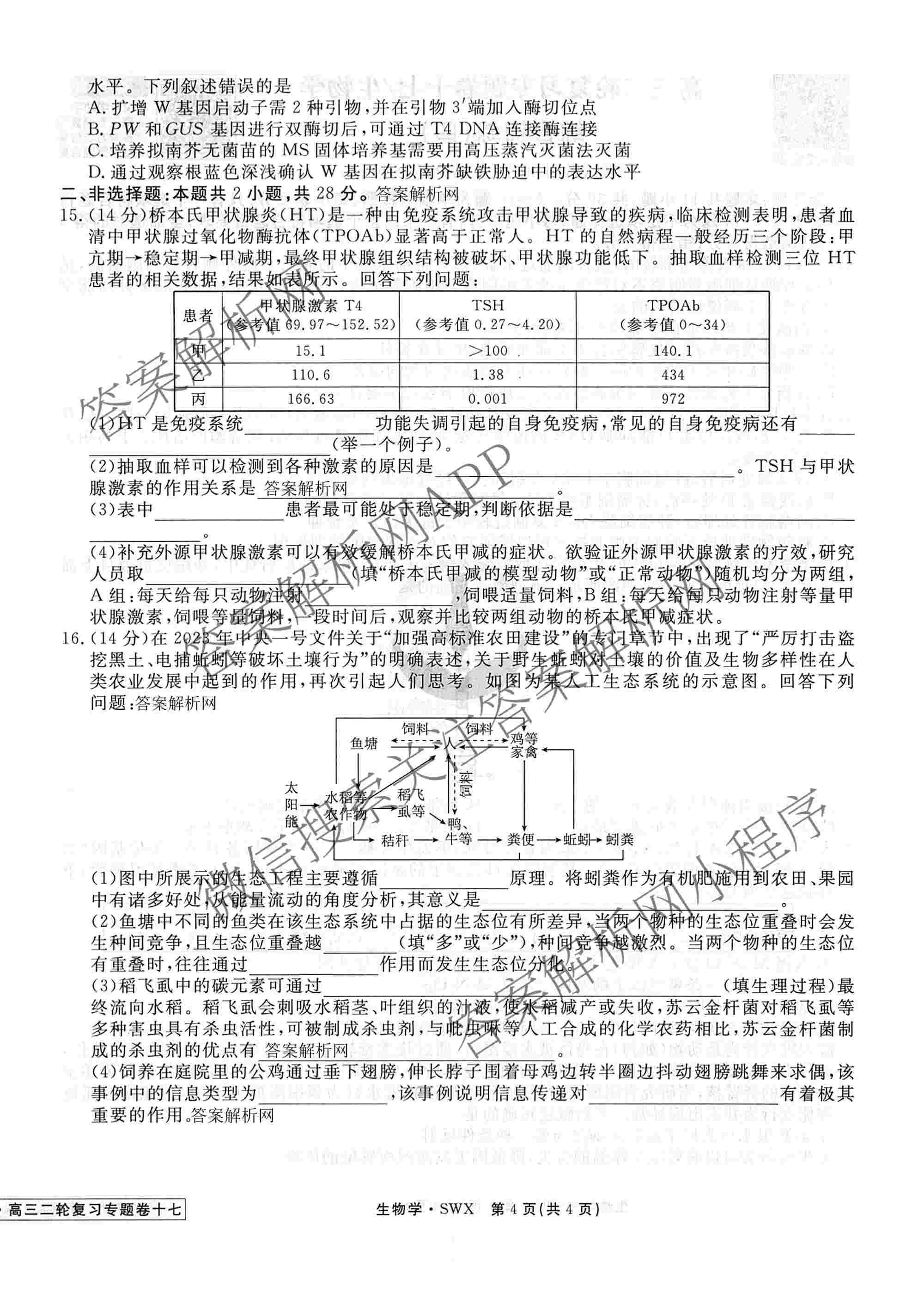 2026届衡水金卷先享题·高三二轮复习专题卷生物(SWX)(十七)17试题,目前衡水金卷先享题答案网已经汇总了2026届衡水金卷先享题·高三二轮复习专题卷生物(SWX)(十七)17试题的各科答案和试卷,获取更多衡水金卷先享题答案解析,请在关注本站。