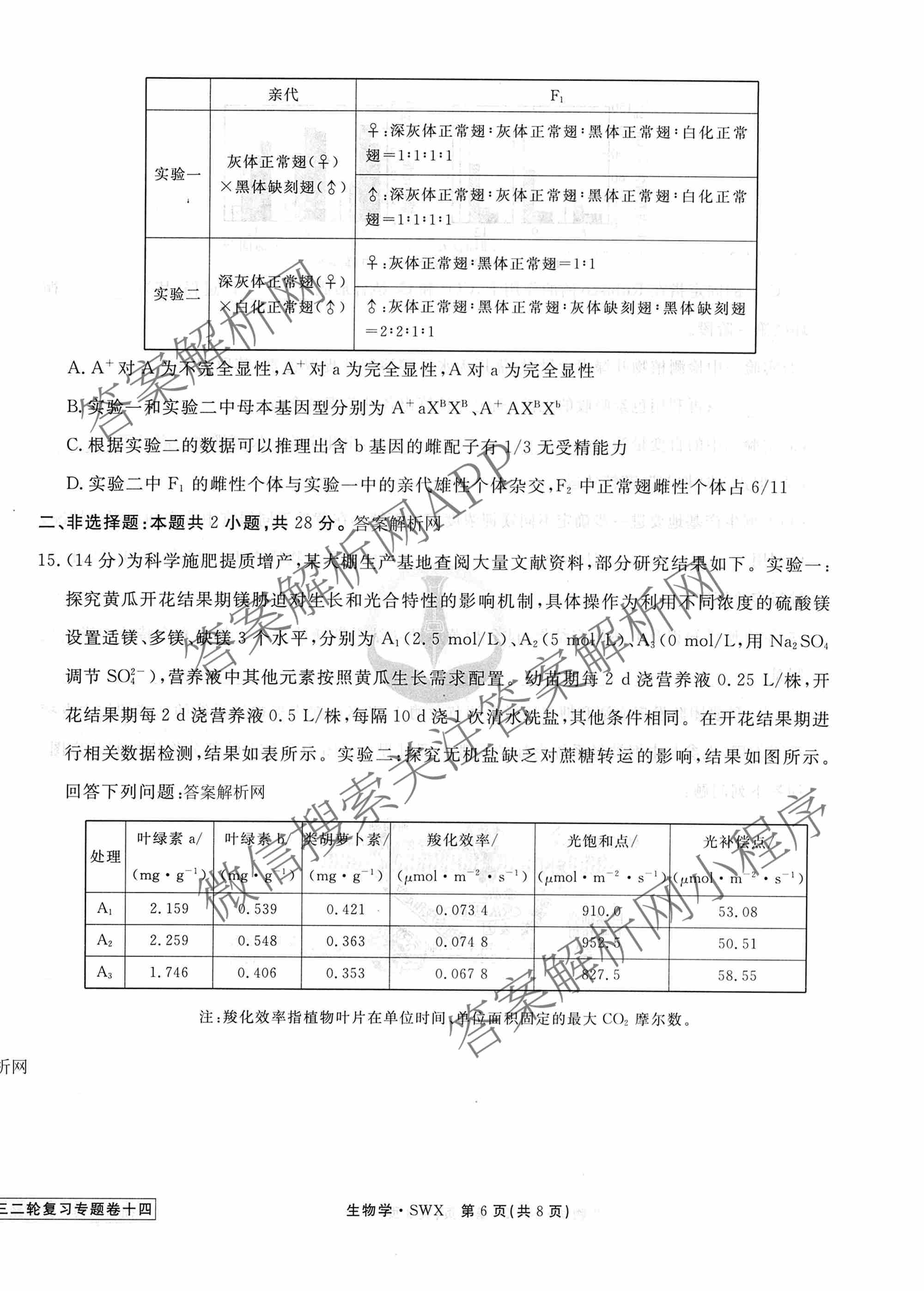 2026届衡水金卷先享题·高三二轮复习专题卷生物(SWX)(十四)14试题,目前衡水金卷先享题答案网已经汇总了2026届衡水金卷先享题·高三二轮复习专题卷生物(SWX)(十四)14试题的各科答案和试卷,获取更多衡水金卷先享题答案解析,请在关注本站。