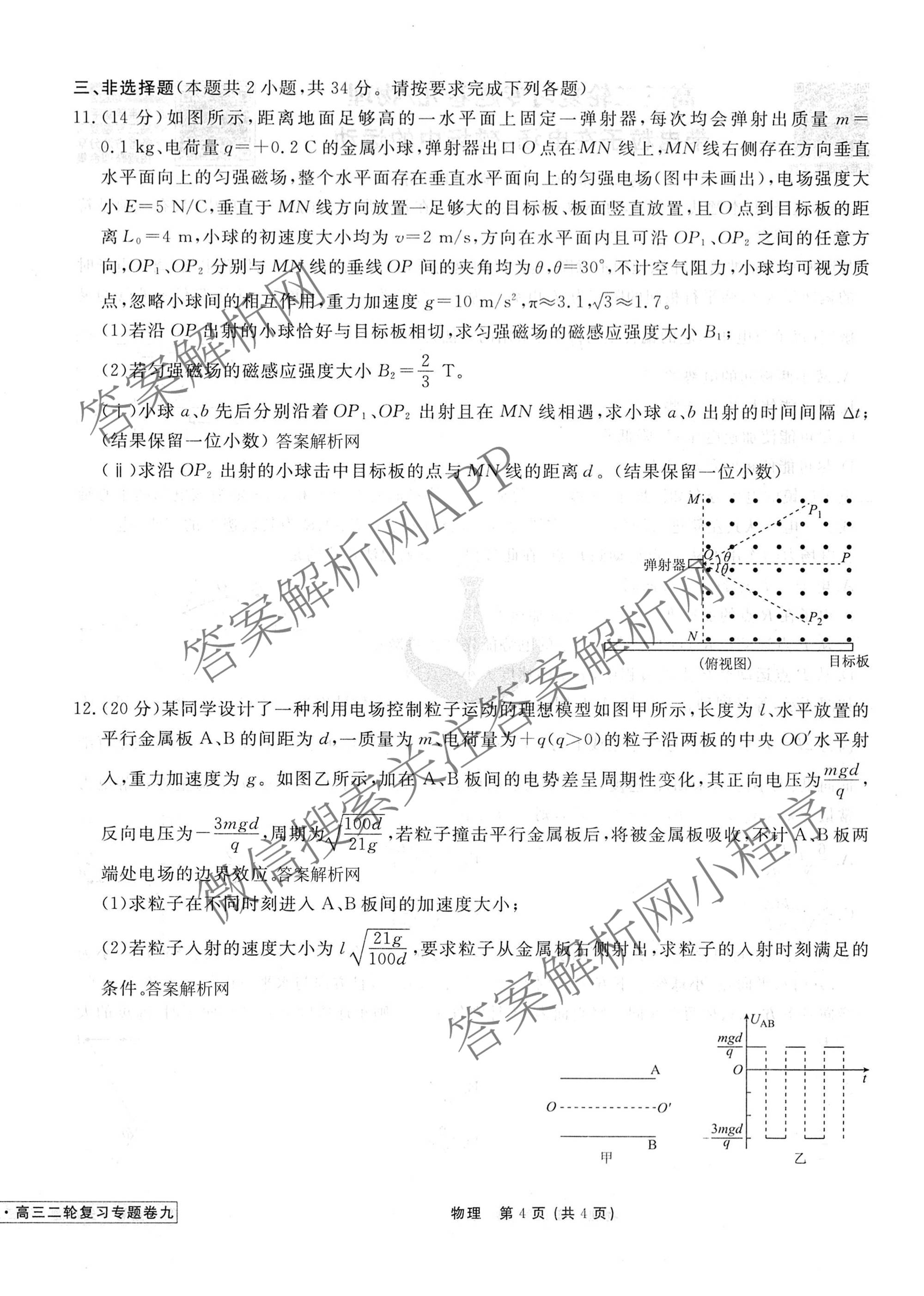 2026届衡水金卷先享题·高三二轮复习专题卷物理(九)9试题,目前衡水金卷先享题答案网已经汇总了2026届衡水金卷先享题·高三二轮复习专题卷物理(九)9试题的各科答案和试卷,获取更多衡水金卷先享题答案解析,请在关注本站。