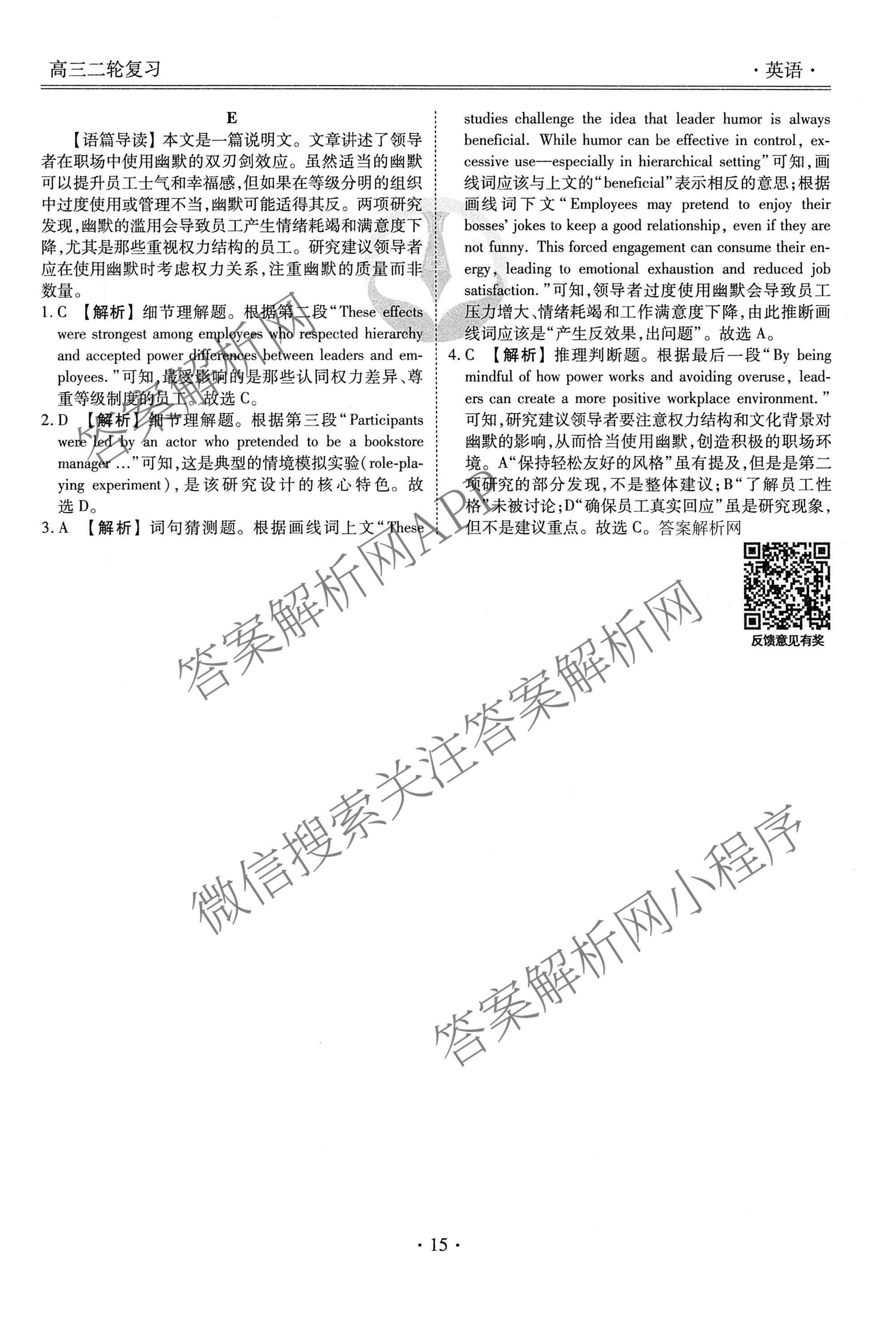 2026届衡水金卷先享题高三二轮复习专题卷英语(四)4答案