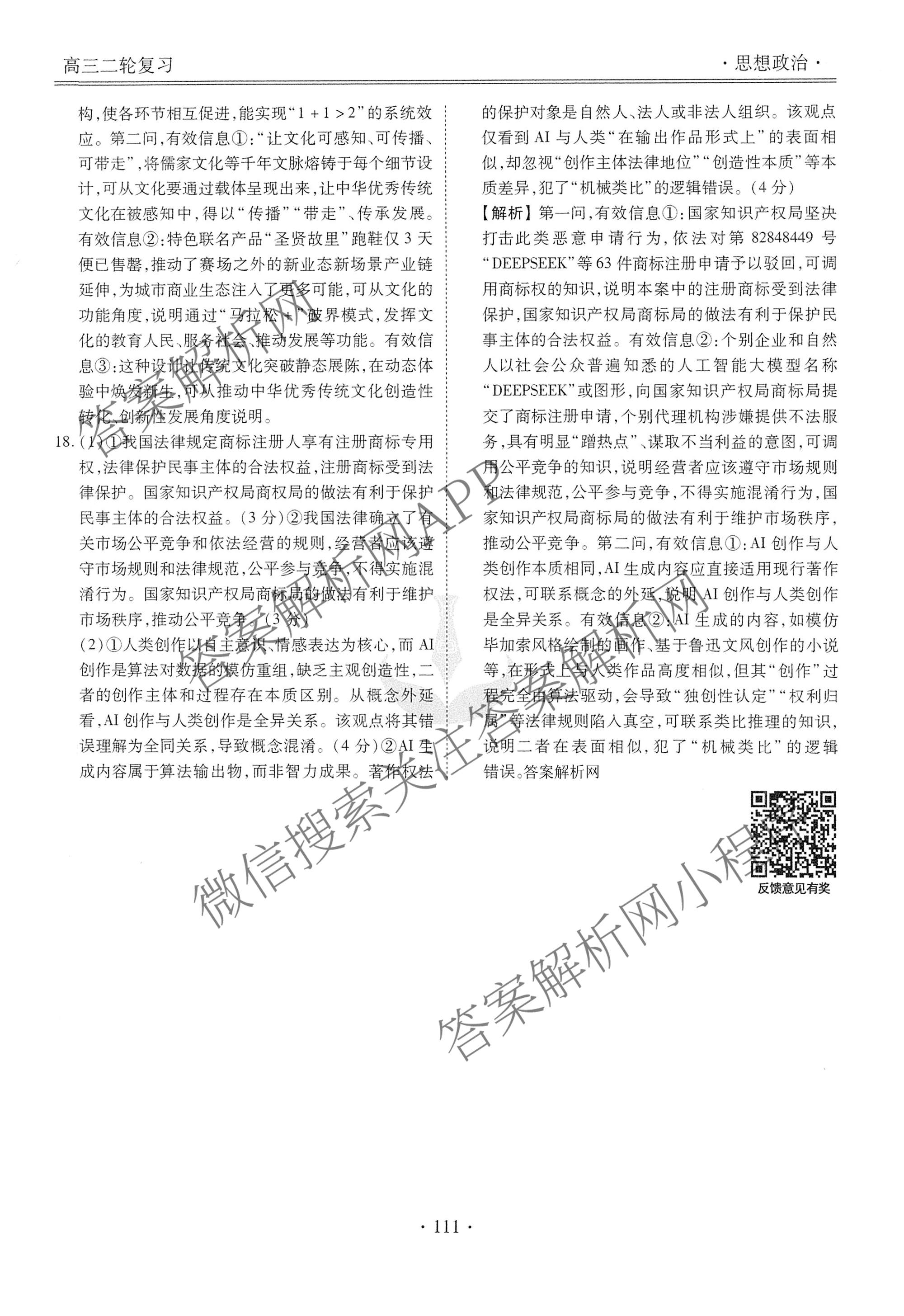 2026届衡水金卷先享题高三二轮复习专题卷政治(二十五)25答案