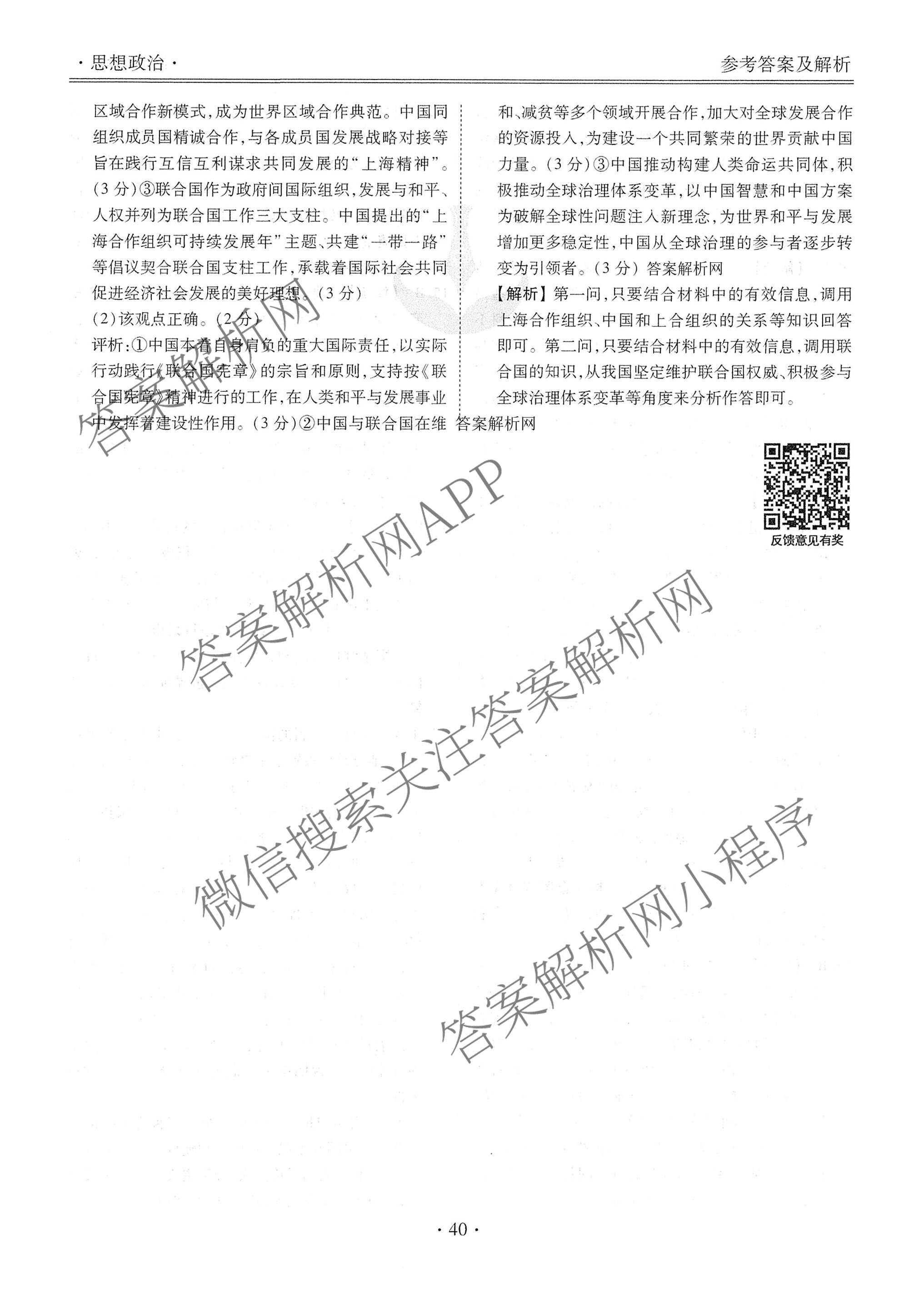 2026届衡水金卷先享题高三二轮复习专题卷政治(十)10答案