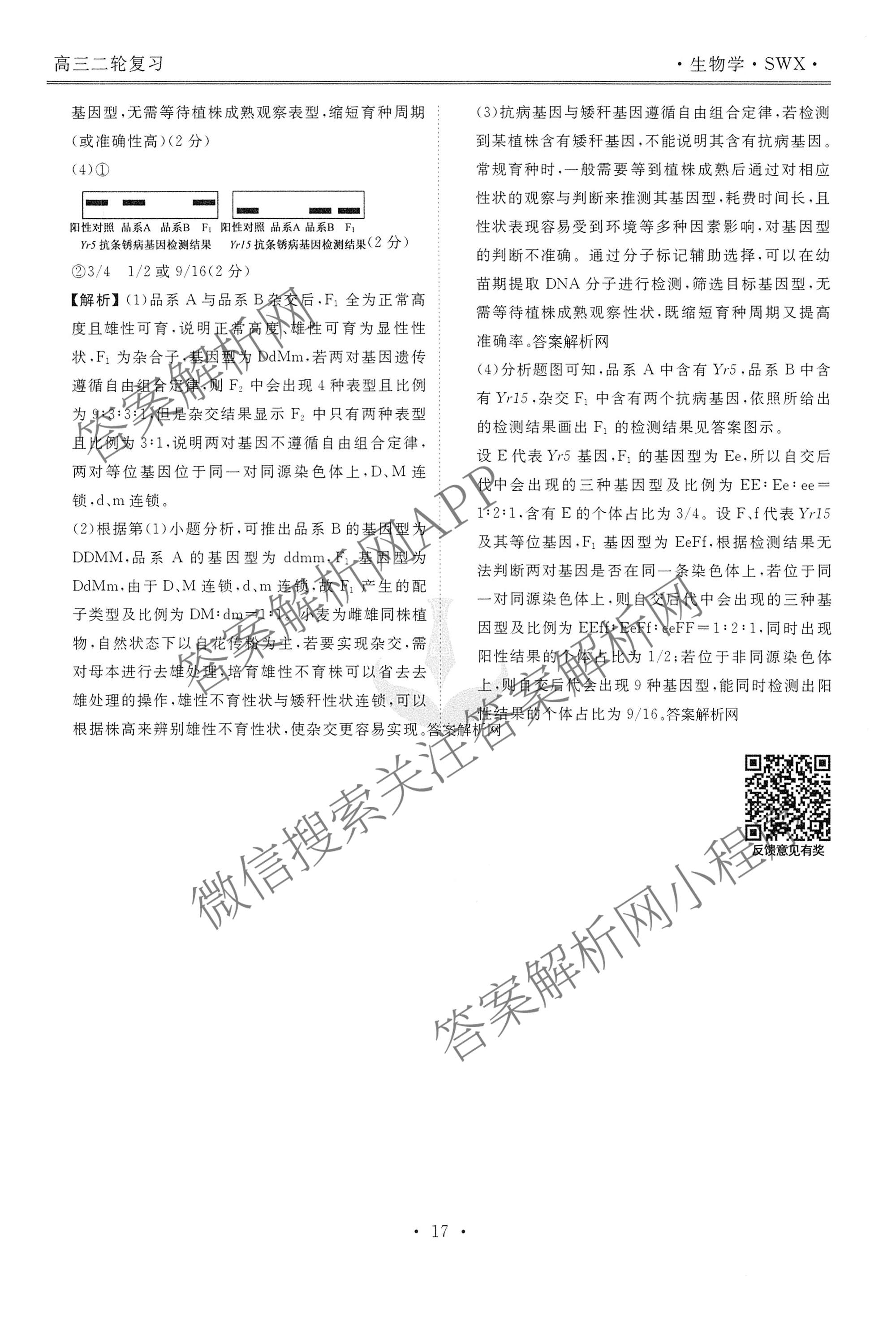 2026届衡水金卷先享题高三二轮复习专题卷生物(SWX)(四)4答案
