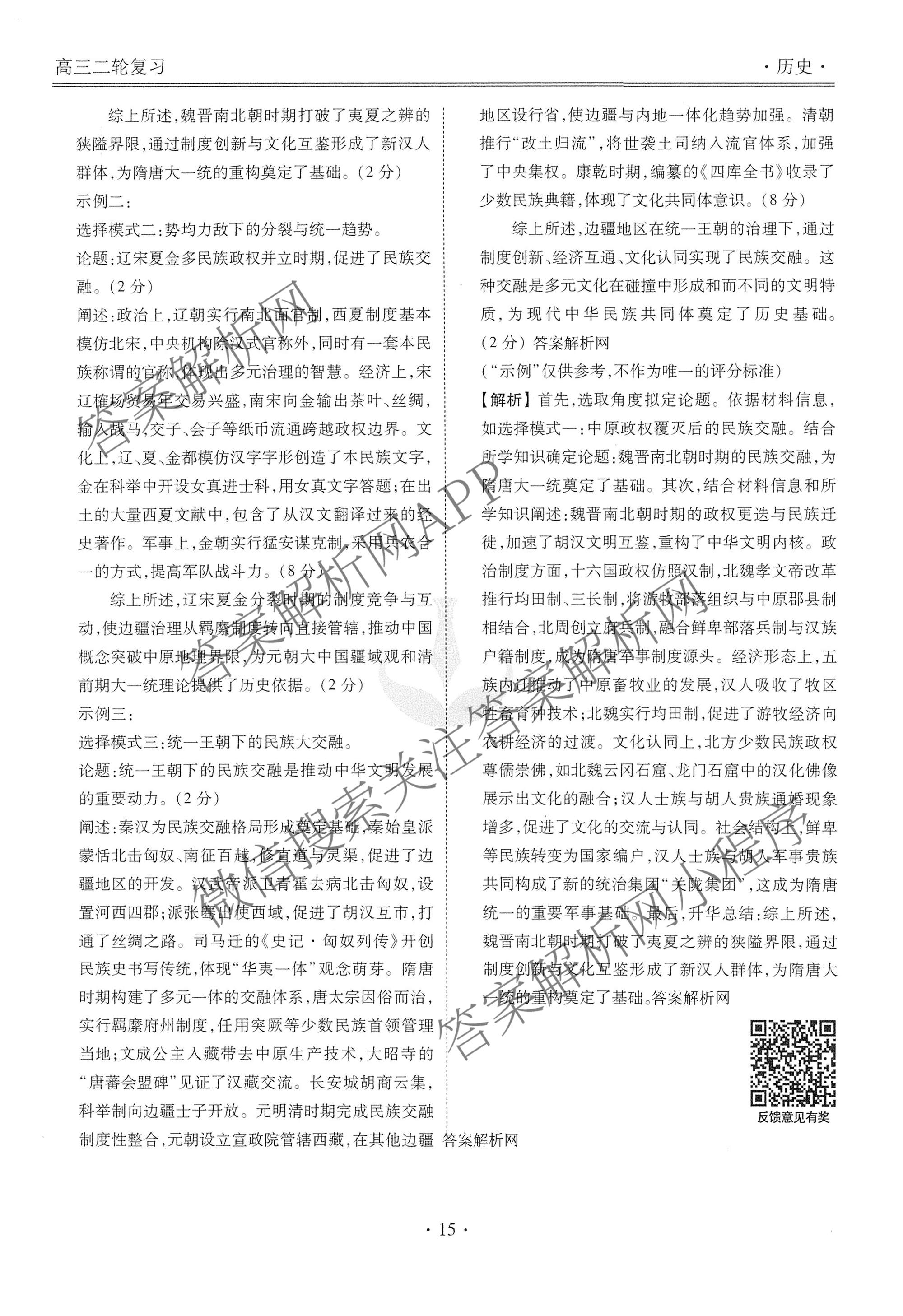 2026届衡水金卷先享题高三二轮复习专题卷历史(三)3答案