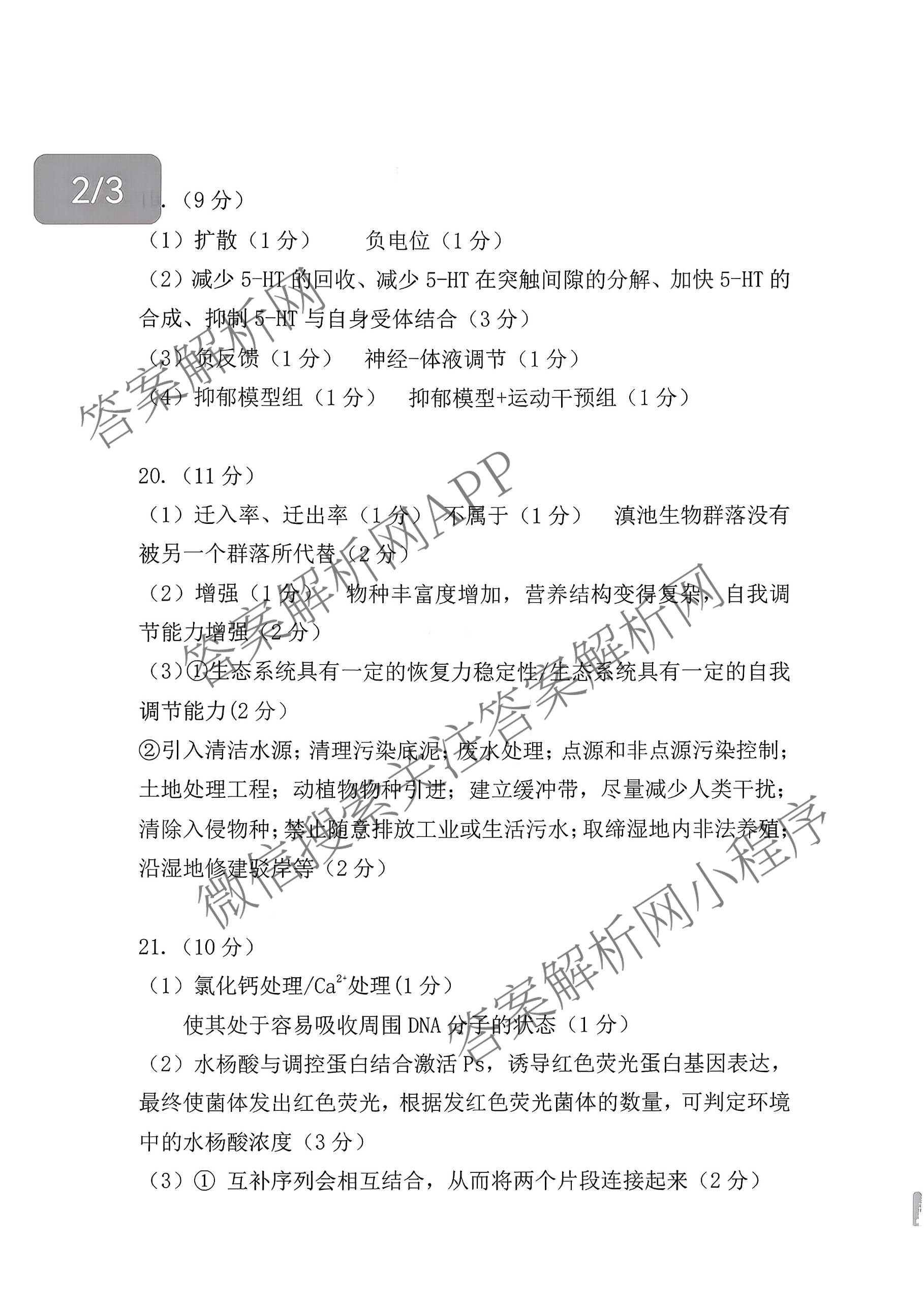 - 2025-2026[高三]云南省曲靖市学年年级第一次教学质量监测生物答案