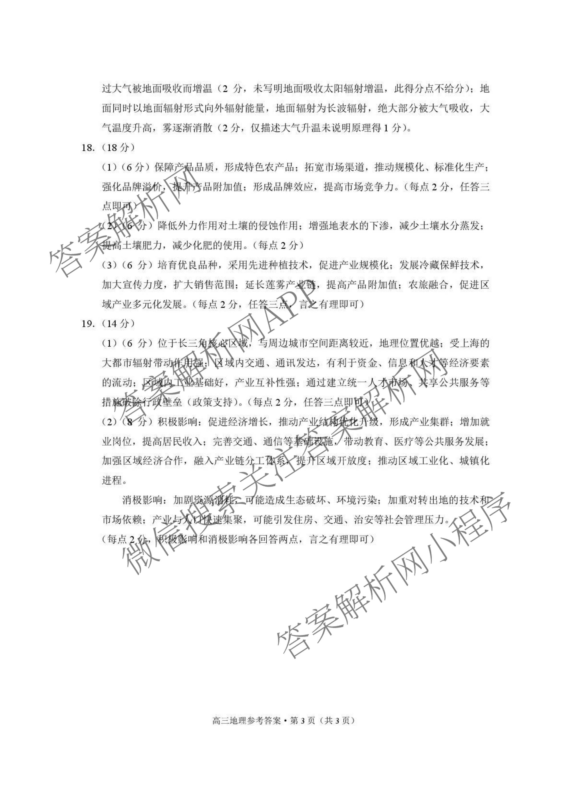 - (高三)云南省昭通市2026届高中毕业生模拟考试地理答案