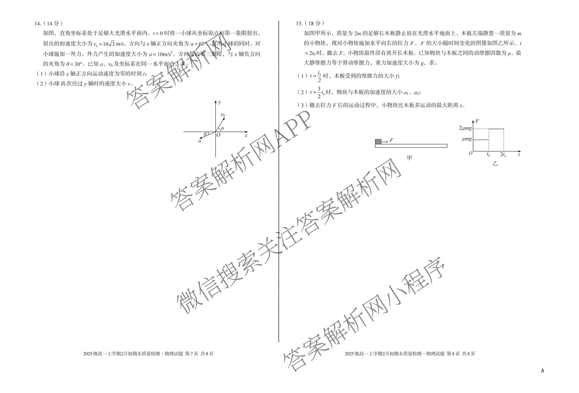 - [高一]安徽省2025级上学期2月初期末质量检测物理(A)试题
