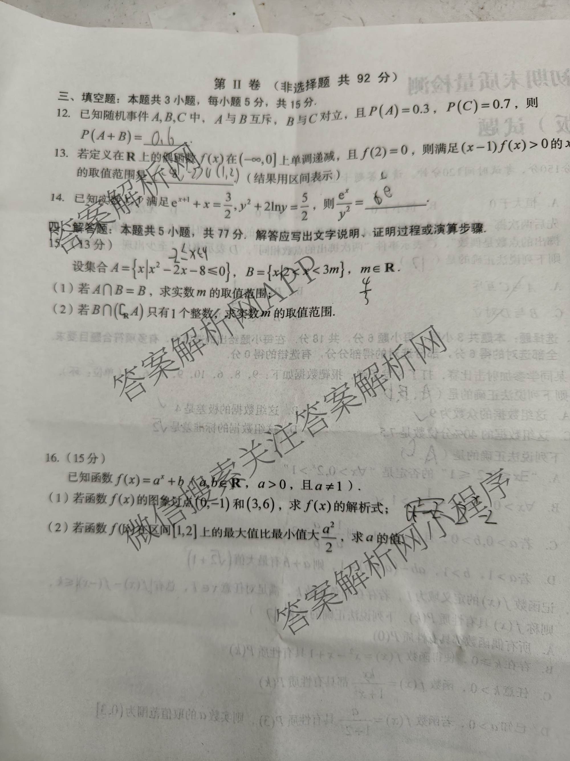 安徽省2025级高一上学期2月初期末质量检测数学(北师大版)试题,目前衡水金卷先享题答案网已经汇总了安徽省2025级高一上学期2月初期末质量检测数学(北师大版)试题的各科答案和试卷,获取更多地方模拟答案解析,请在关注本站。