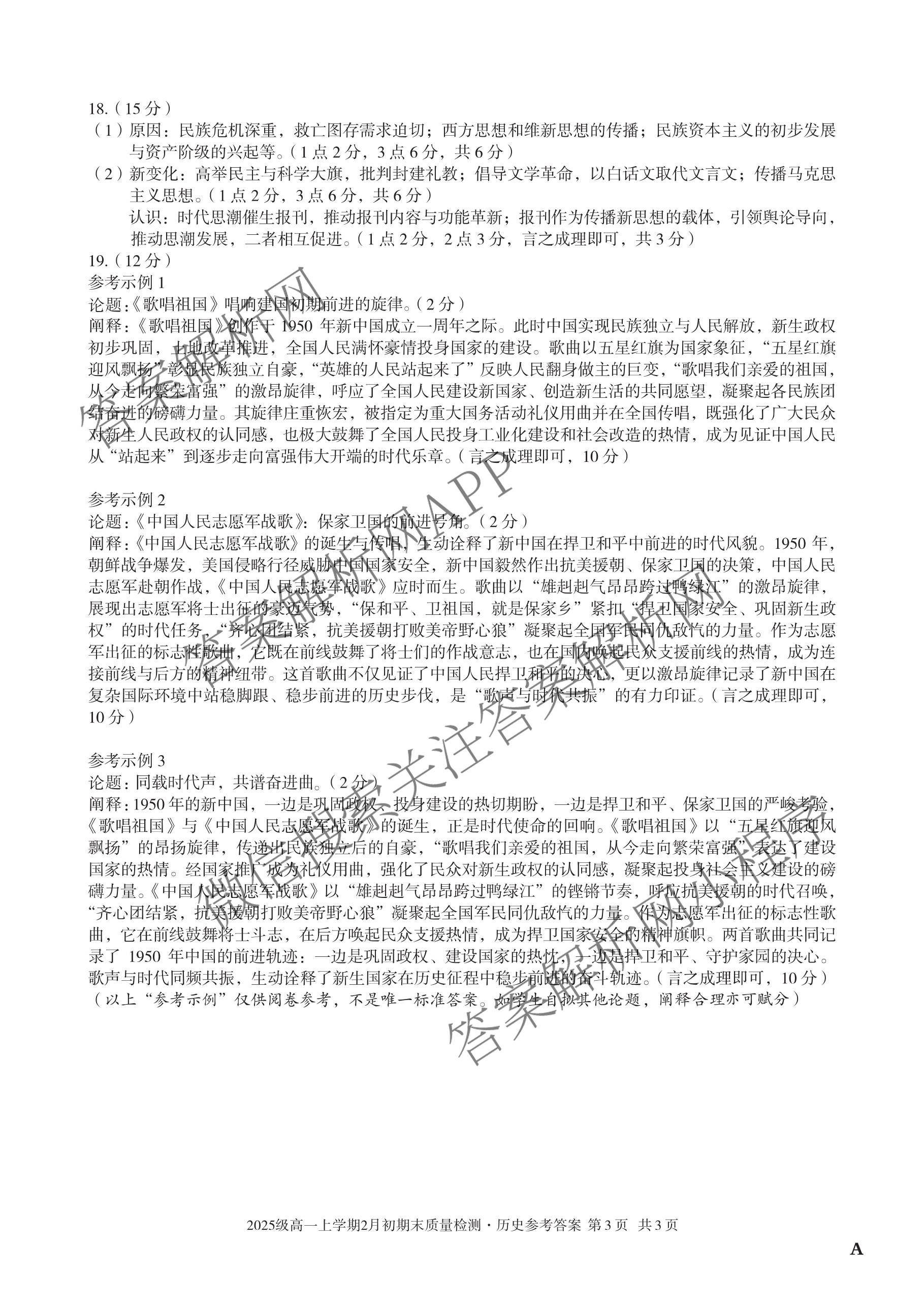- [高一]安徽省2025级上学期2月初期末质量检测历史(A)答案