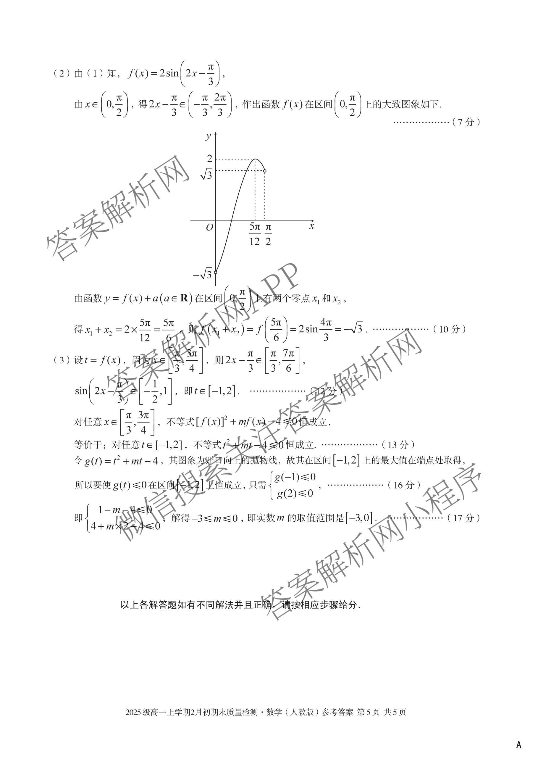 - 安徽省2025级(高一)上学期2月初期末质量检测数学(A 人教A版)答案