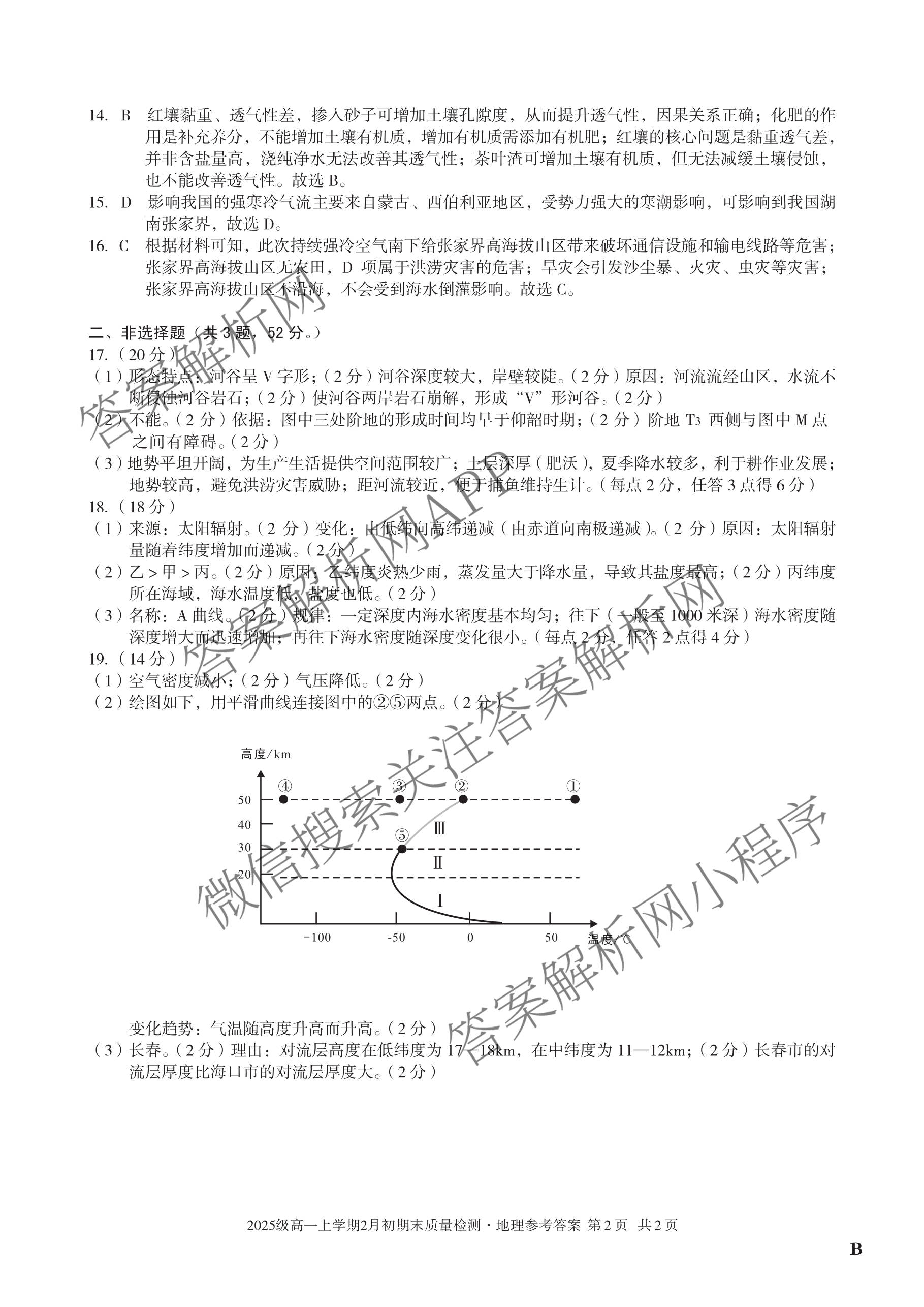 - [高一]安徽省2025级上学期2月初期末质量检测地理(B)答案