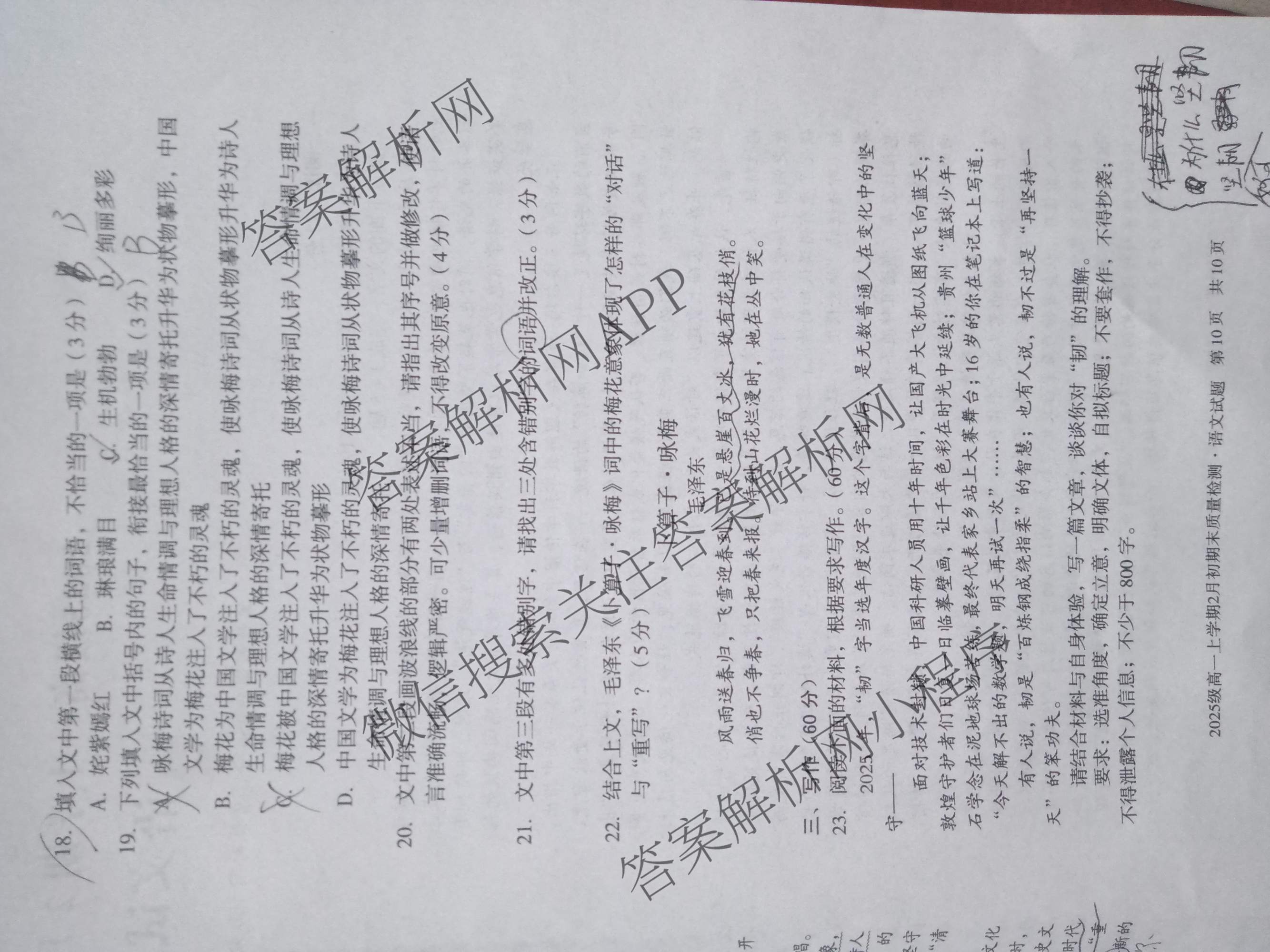- [高一]安徽省2025级上学期2月初期末质量检测语文(B)试题