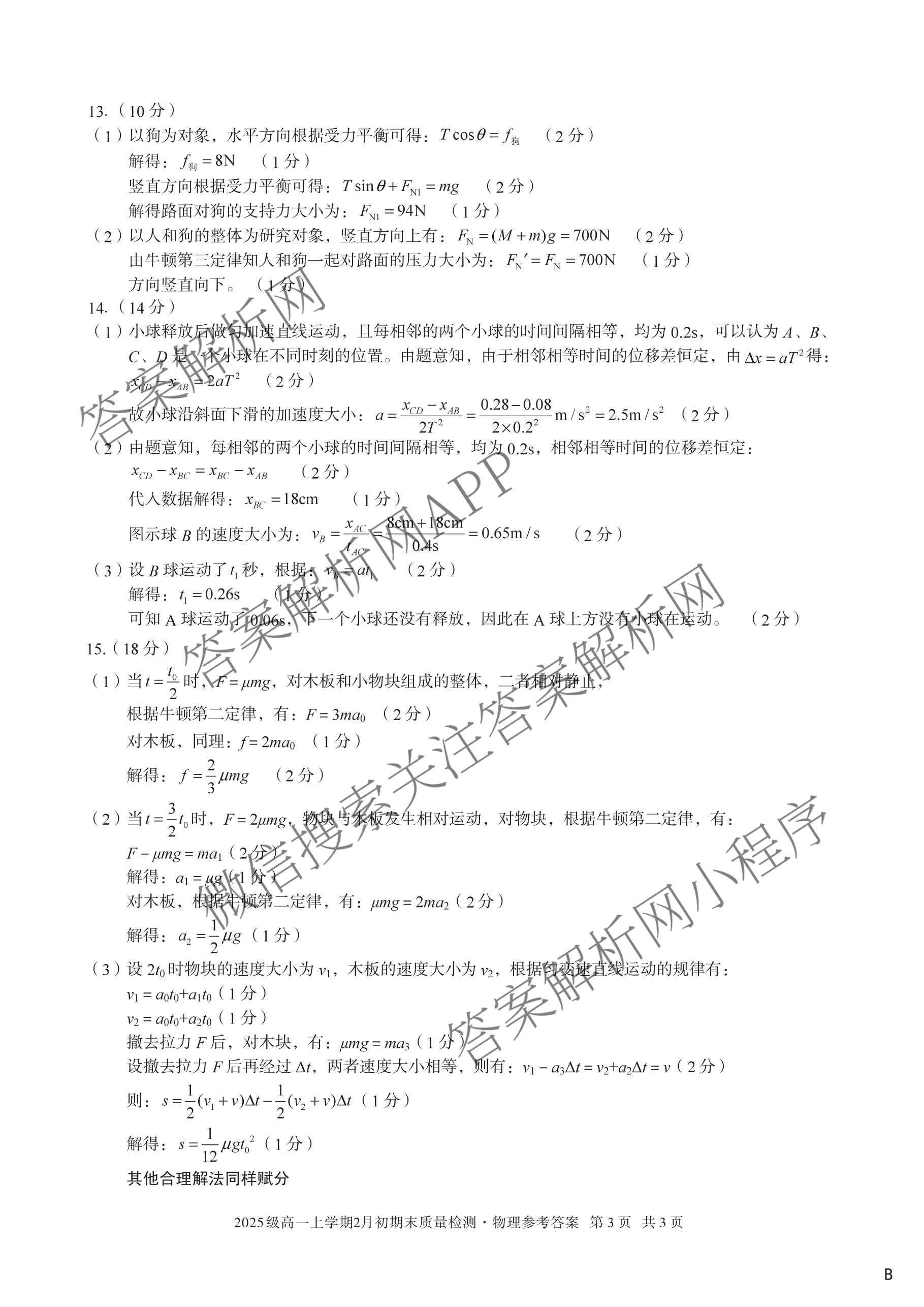- (高一)安徽省2025级上学期2月初期末质量检测物理(B)答案