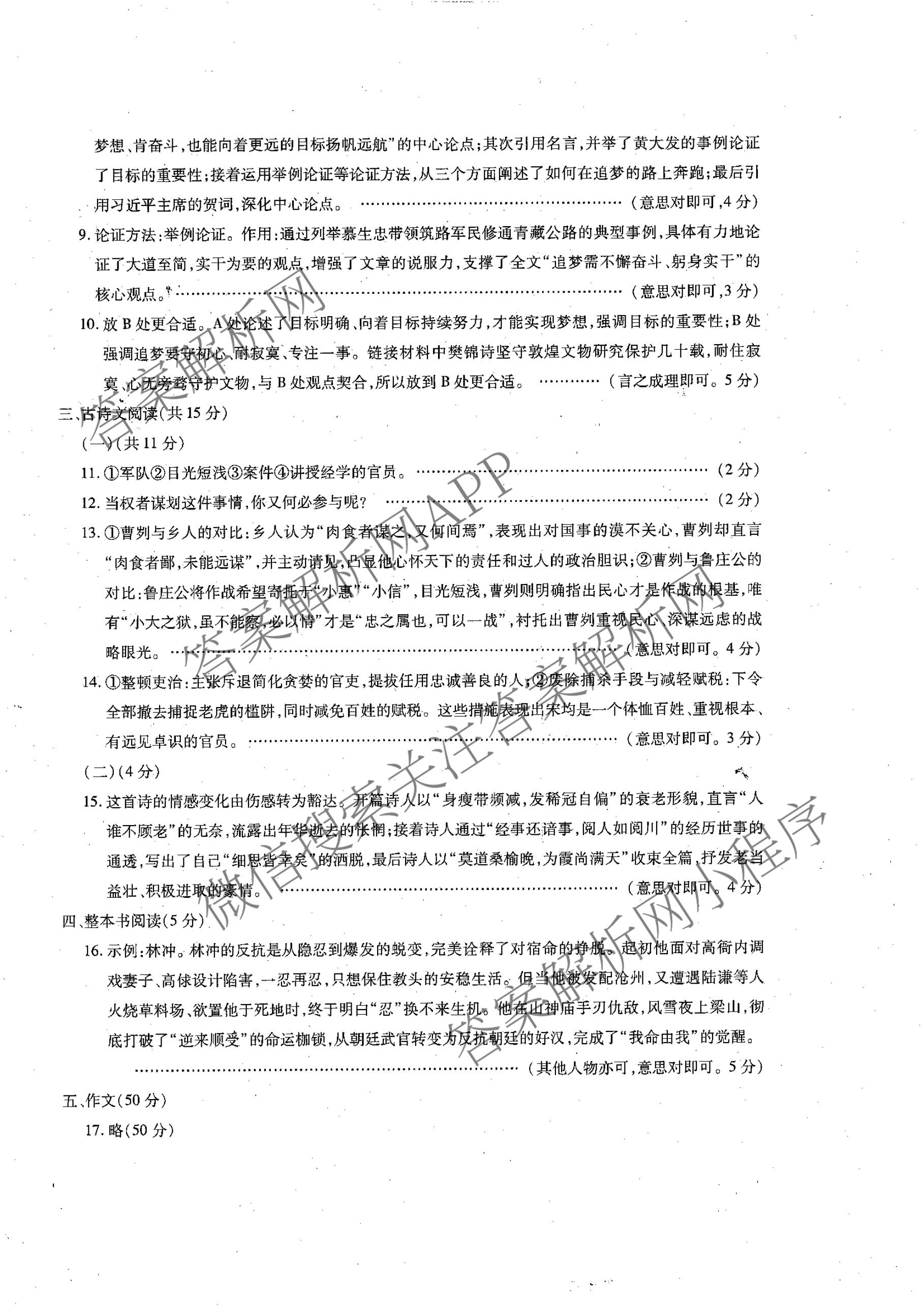 - [九年级]2026河南中招过渡模拟试卷(2月)语文答案