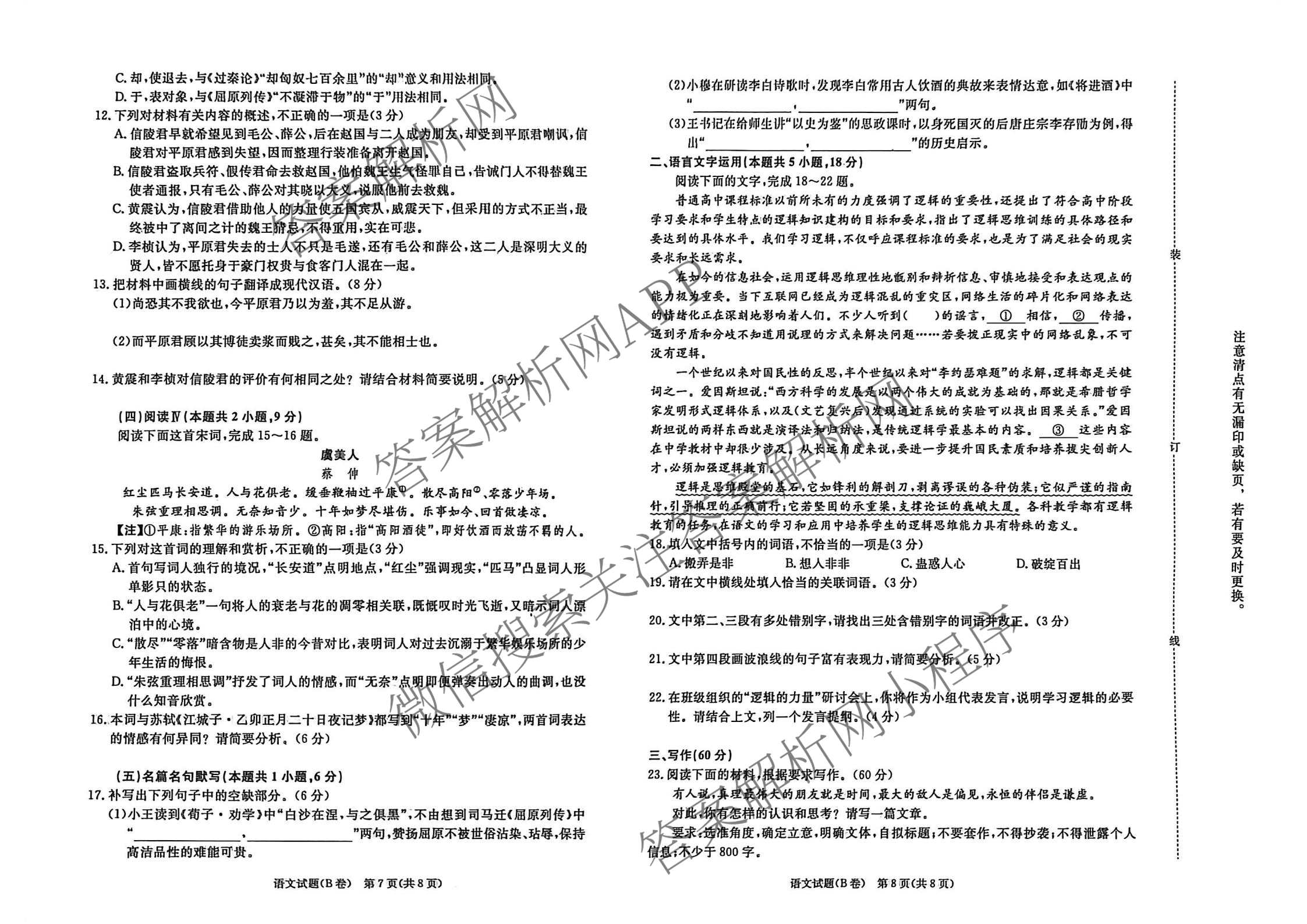 河南省普通高中2025-2026学年(上)高二年级期末考试语文(B卷)试题,目前衡水金卷先享题答案网已经汇总了河南省普通高中2025-2026学年(上)高二年级期末考试语文(B卷)试题的各科答案和试卷,获取更多地方模拟答案解析,请在关注本站。