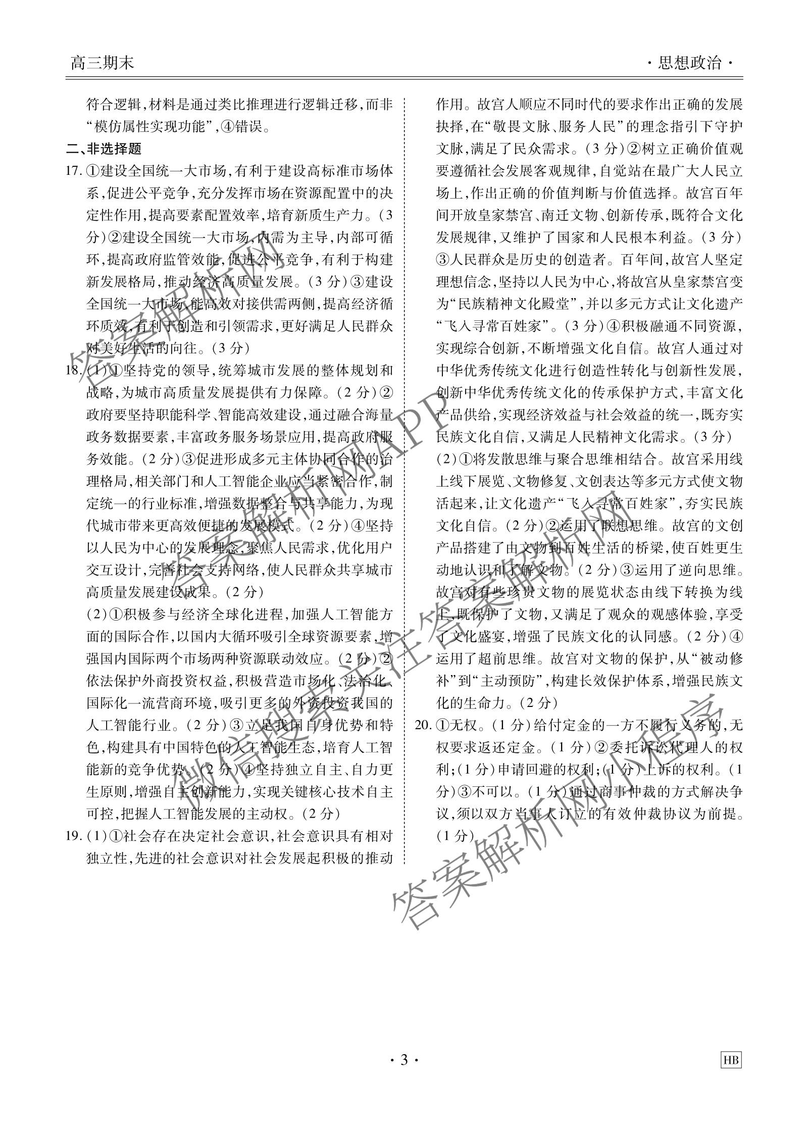 - 2025-2026(高三)(衡水金卷先享题)·月考卷·学年度上学期年级期末考试政治(HB)答案