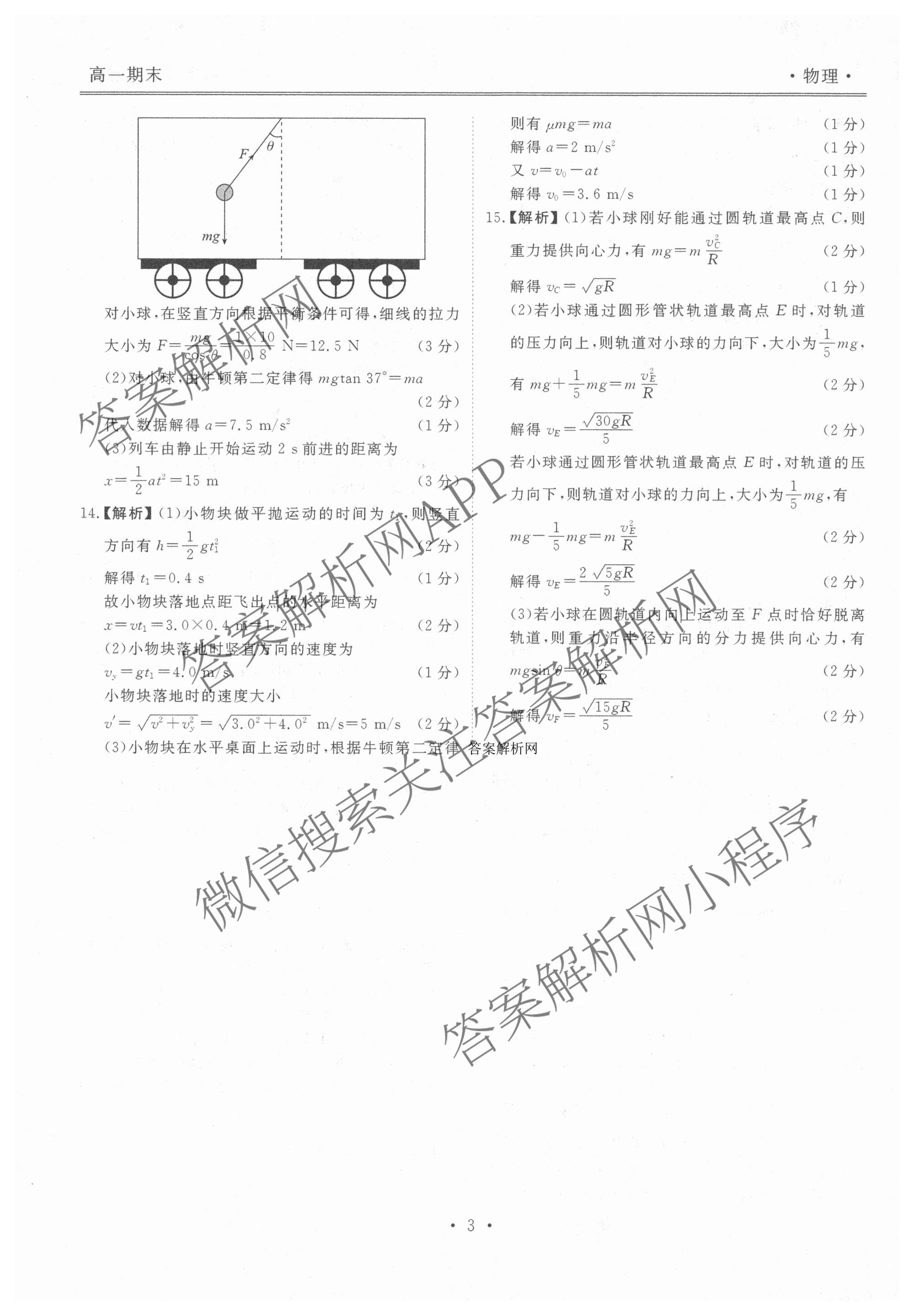 2025-2026[高一][衡水金卷先享题]·月考卷学年度上学期年级期末考试物理答案
