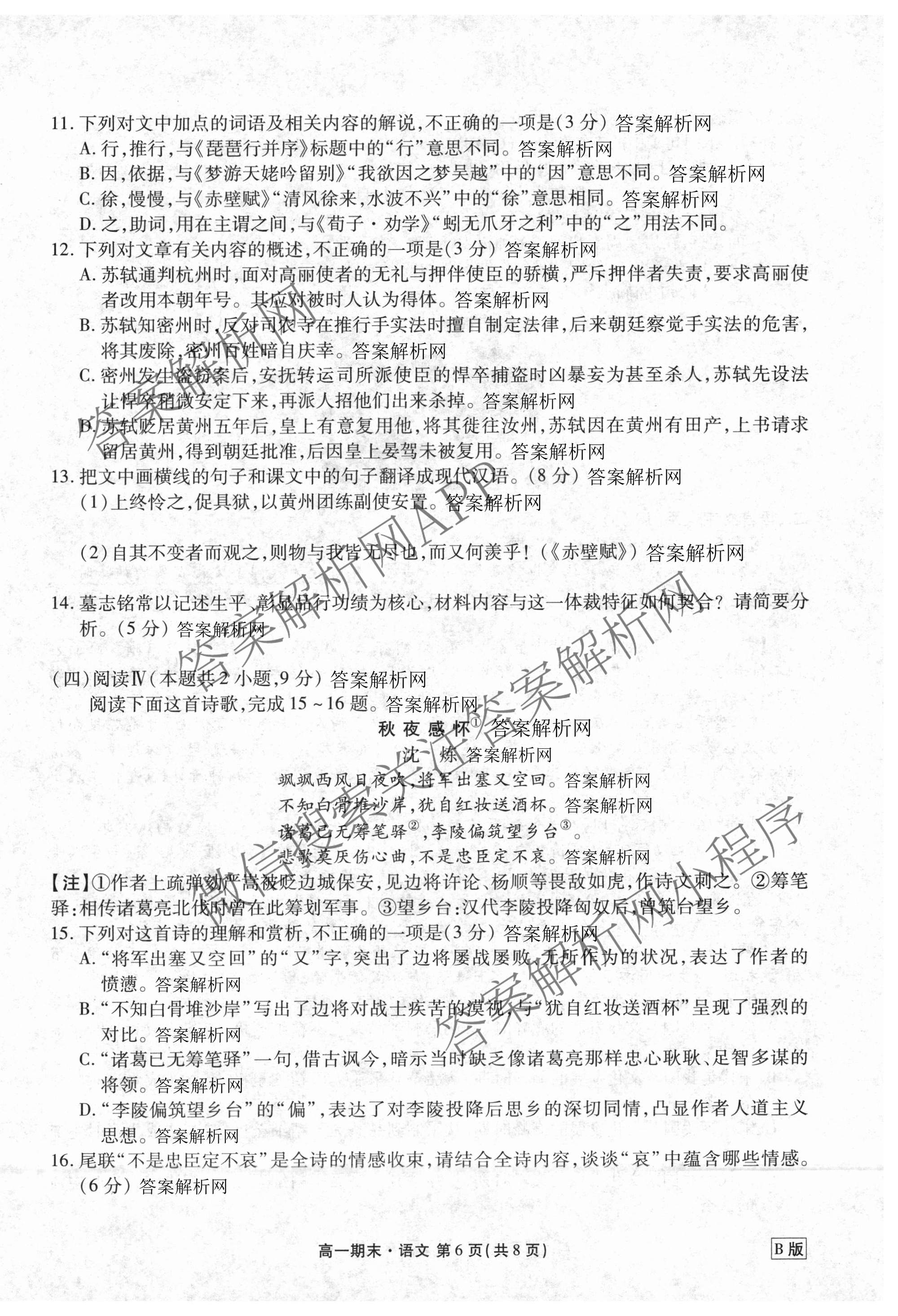 - (衡水金卷先享题)月考卷2025-2026学年度上学期(高一)年级期末考试语文(B版)答案
