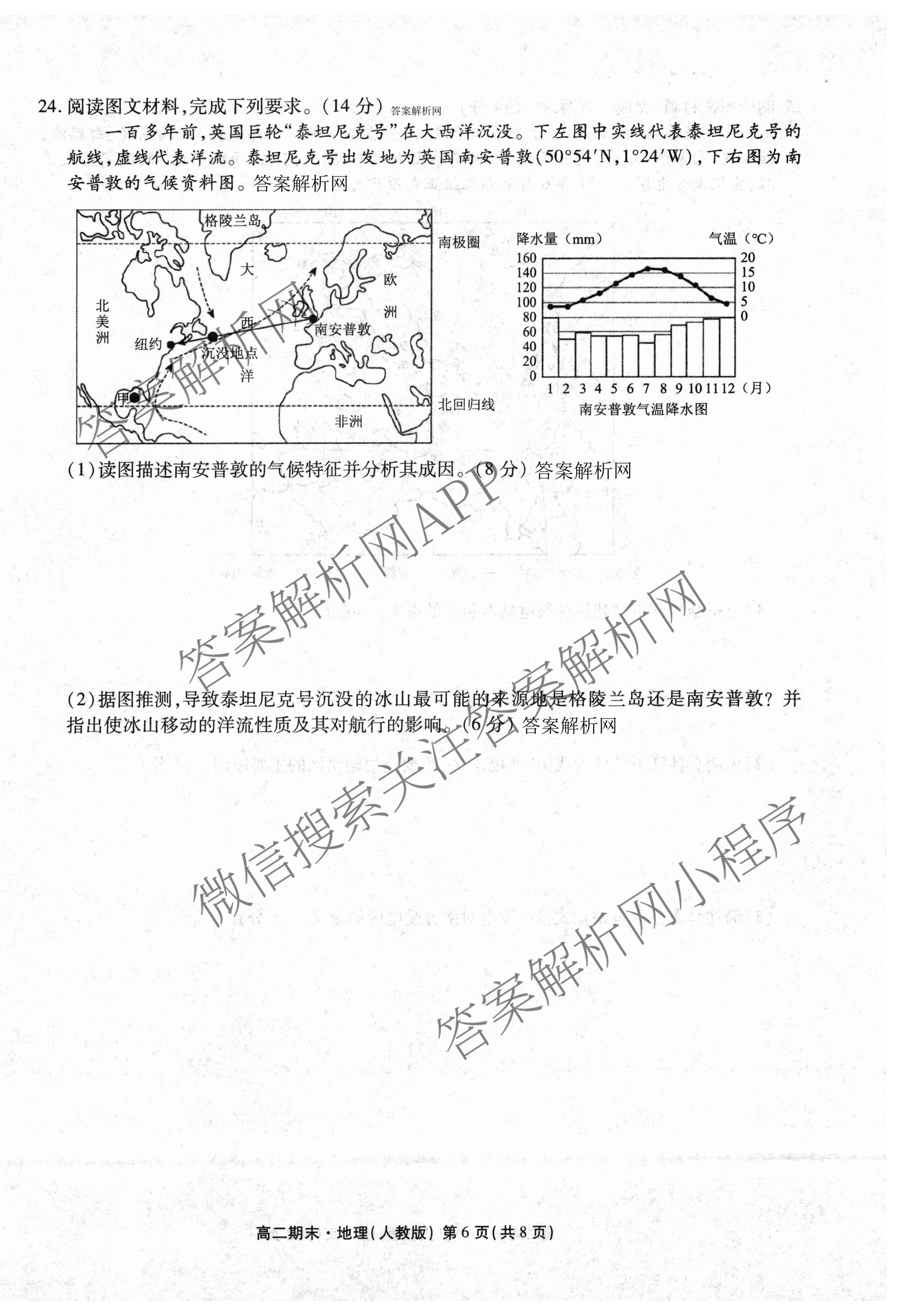 - (衡水金卷先享题)·月考卷2025-2026学年度上学期(高二)年级期末考试地理(人教版)答案