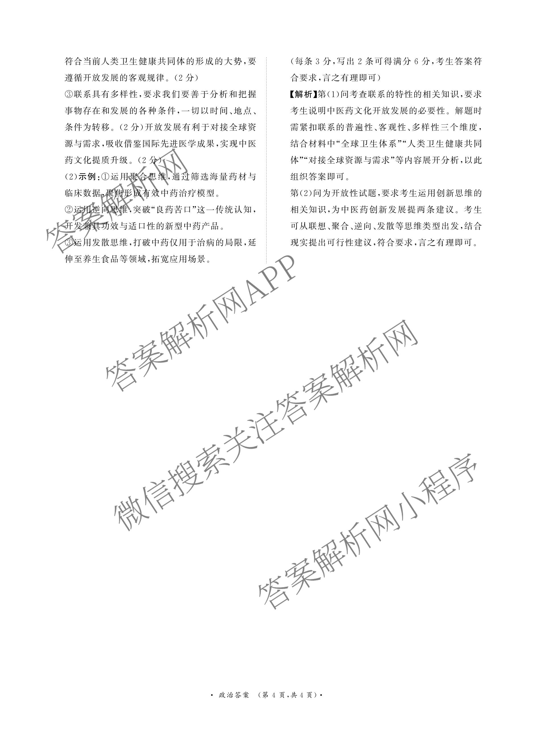 - 河南省普通高中2025-2026学年(上)(高三)年级期末考试政治答案