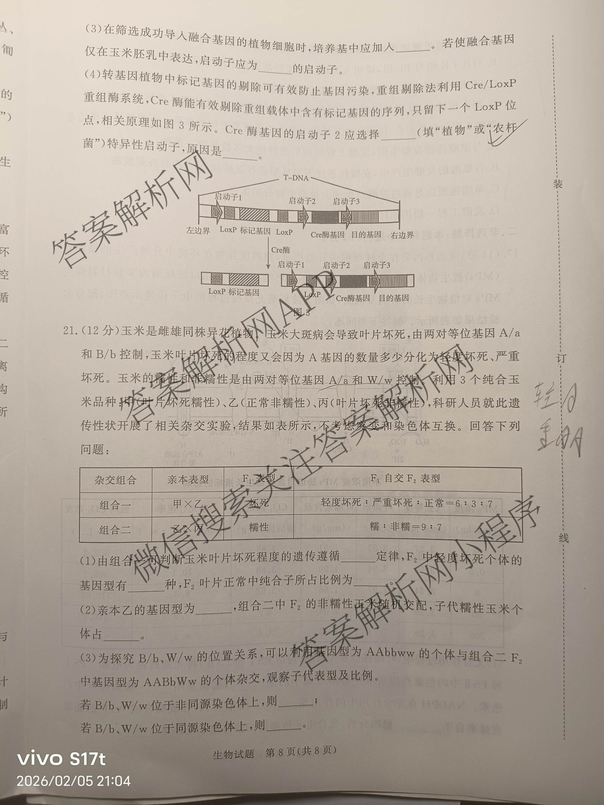 河南省普通高中2025-2026学年(上)高三年级期末考试生物试题,目前衡水金卷先享题答案网已经汇总了河南省普通高中2025-2026学年(上)高三年级期末考试生物试题的各科答案和试卷,获取更多地方模拟答案解析,请在关注本站。
