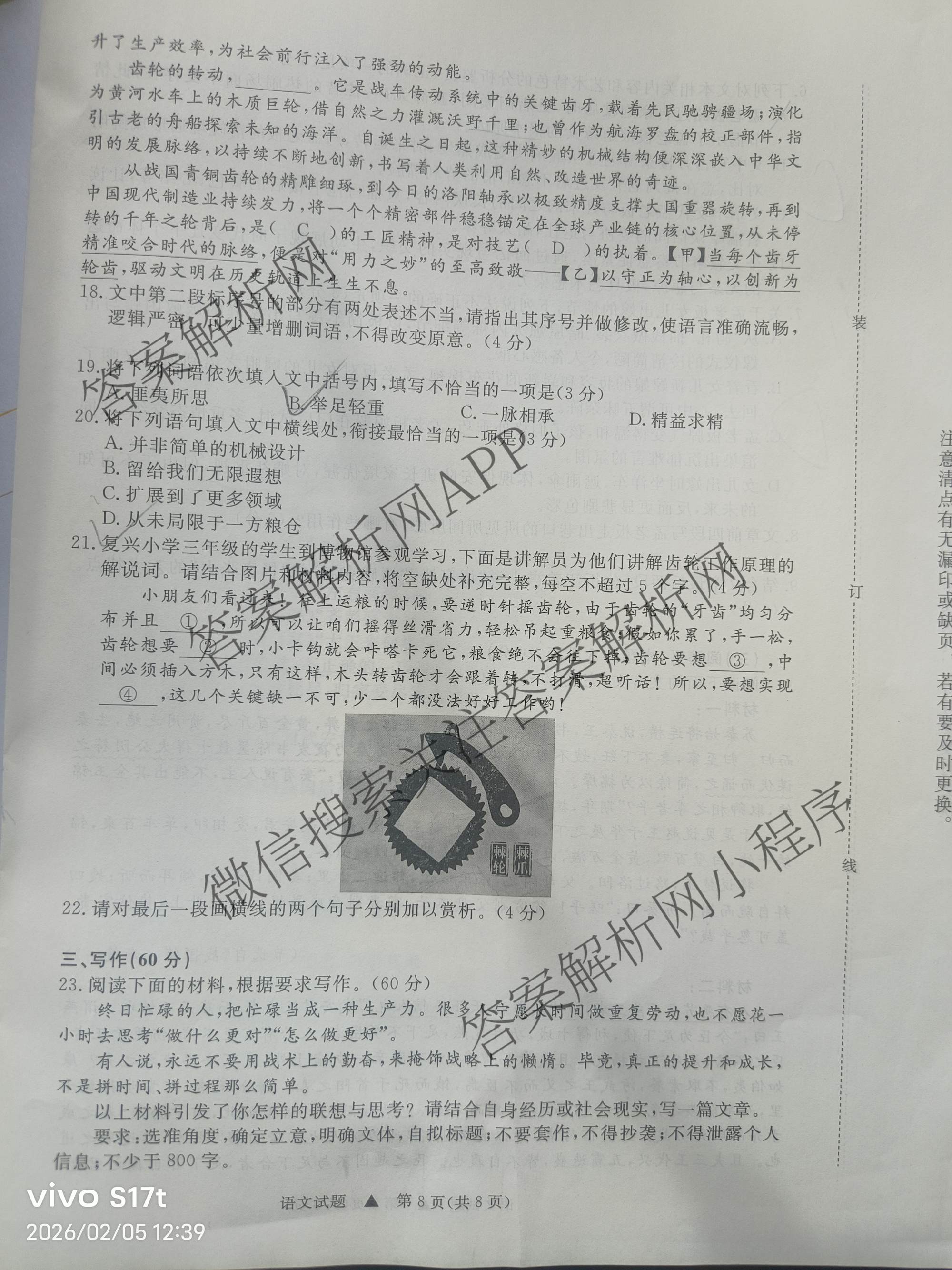 河南省普通高中2025-2026学年(上)高三年级期末考试语文(▲)试题,目前衡水金卷先享题答案网已经汇总了河南省普通高中2025-2026学年(上)高三年级期末考试语文(▲)试题的各科答案和试卷,获取更多地方模拟答案解析,请在关注本站。