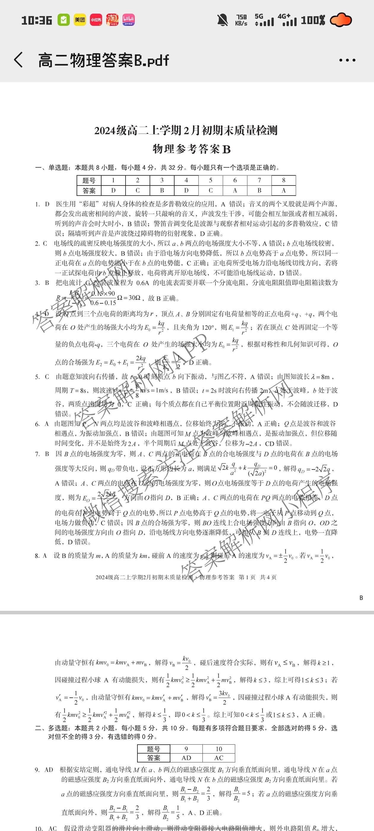 - 安徽省2024级[高二]上学期2月初期末质量检测物理(B)答案