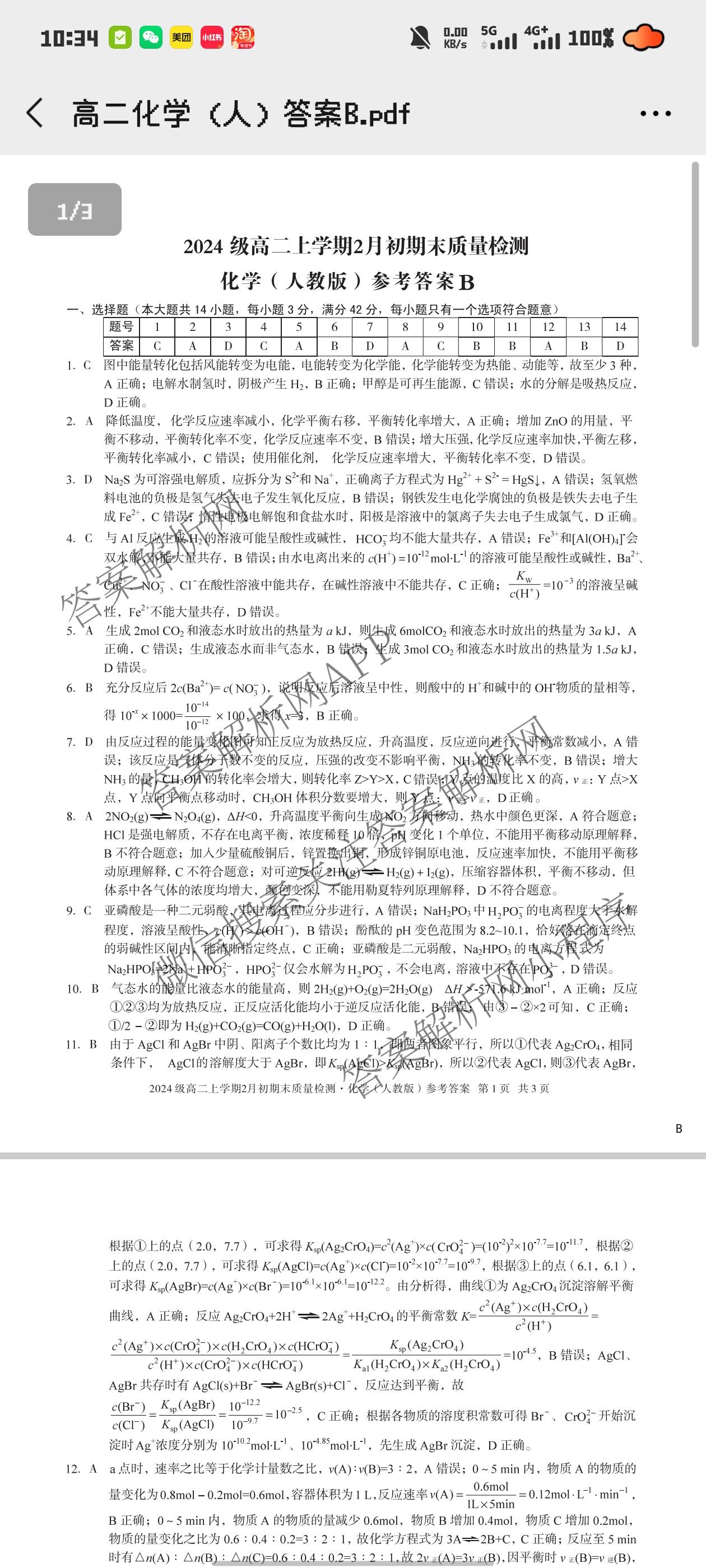 - [高二]安徽省2024级上学期2月初期末质量检测化学(人教版A)答案