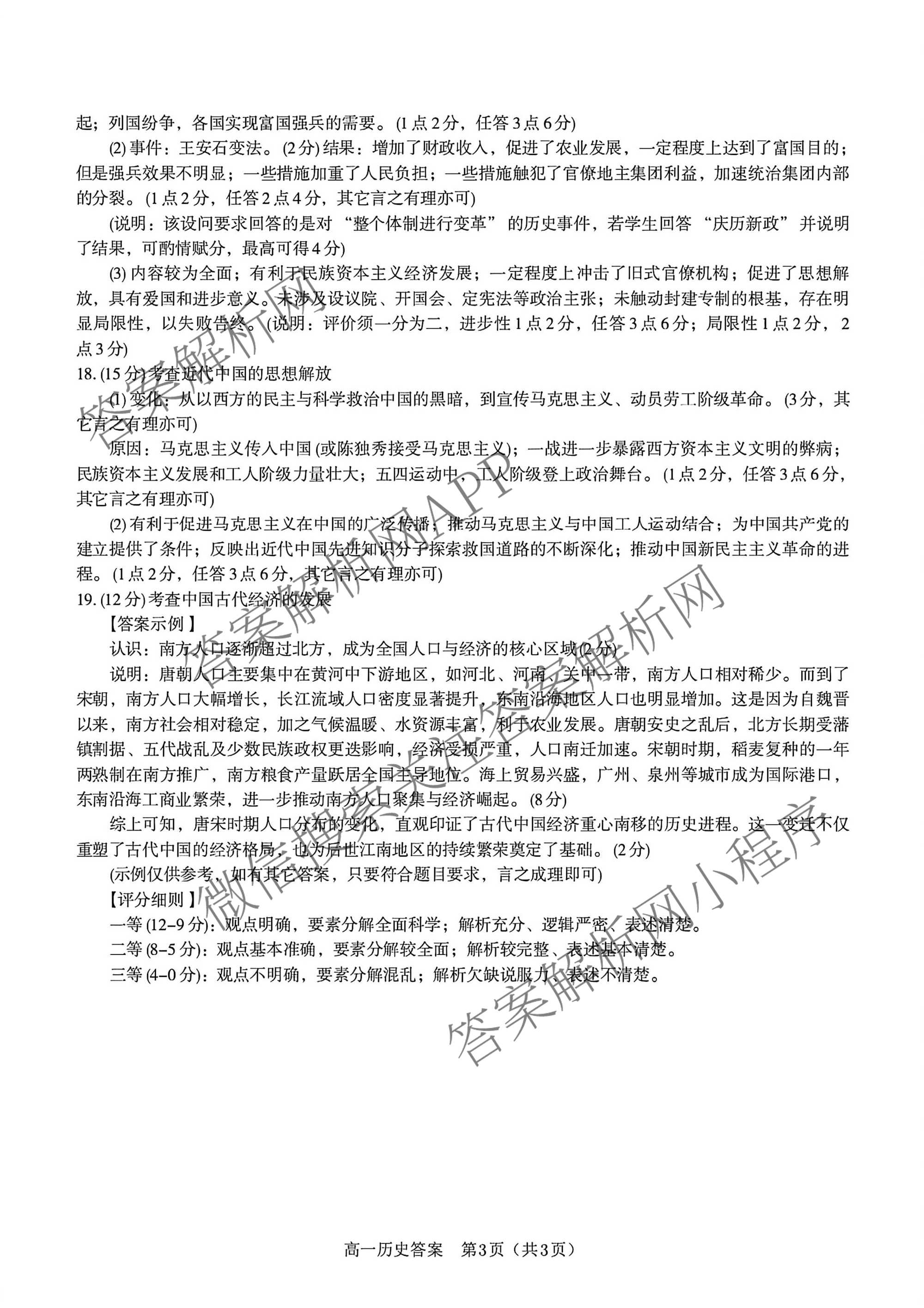 - 2025~2026安徽省高一2月考试(无标题)历史答案