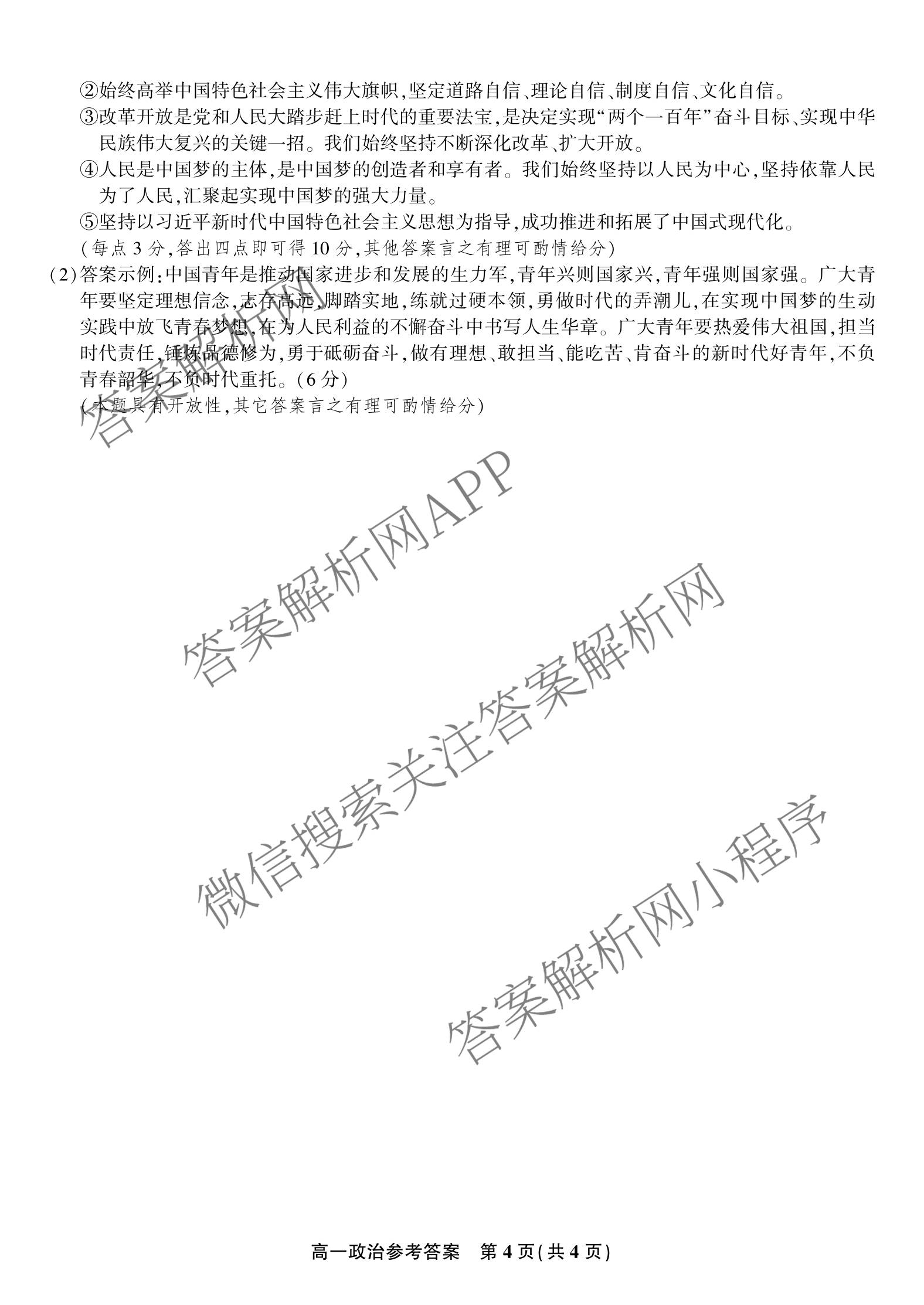 - 2025~2026(高一)安徽省2月考试(无标题)政治答案