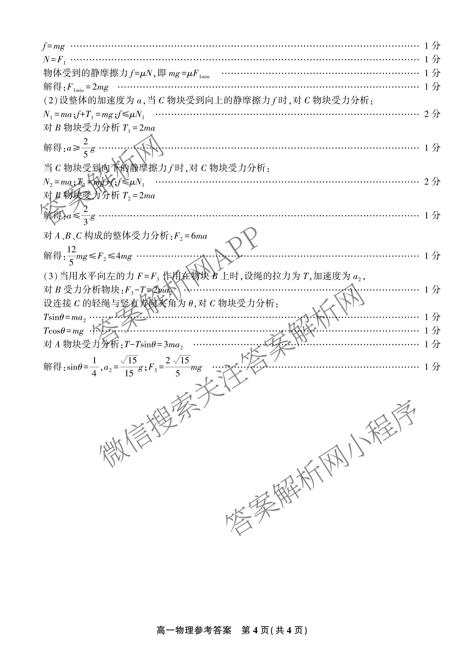 2025~2026安徽省(高一)2月考试(无标题)物理答案