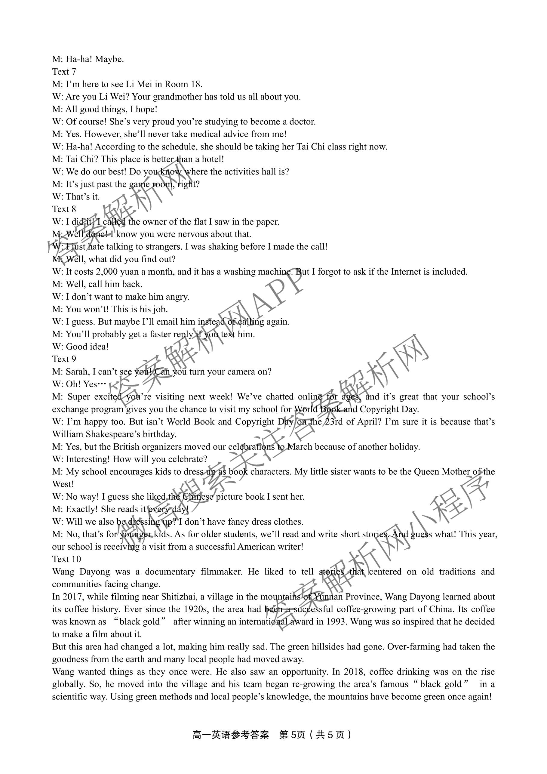 - 2025-2026[高一]安徽省2月考试(无标题)英语答案