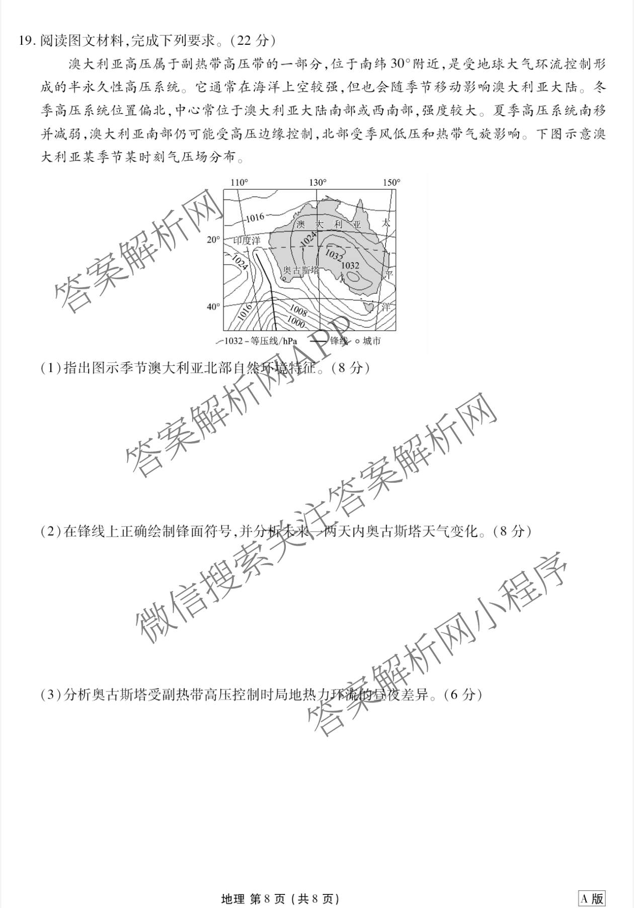 衡水金卷·广东省2025-2026学年高二年级1月份自测地理(A)试题,目前衡水金卷先享题答案网已经汇总了衡水金卷·广东省2025-2026学年高二年级1月份自测地理(A)试题的各科答案和试卷,获取更多衡水金卷先享题答案解析,请在关注本站。