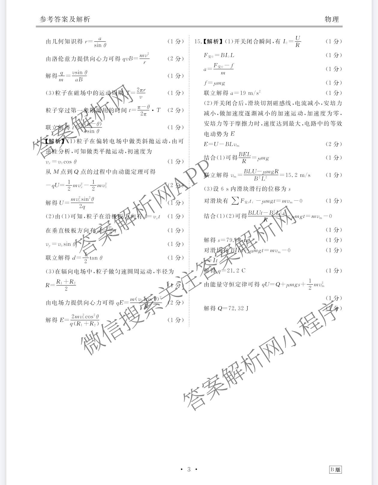 - 2025~2026[高二]衡水金卷·广东省学年年级1月份自测物理(B)答案