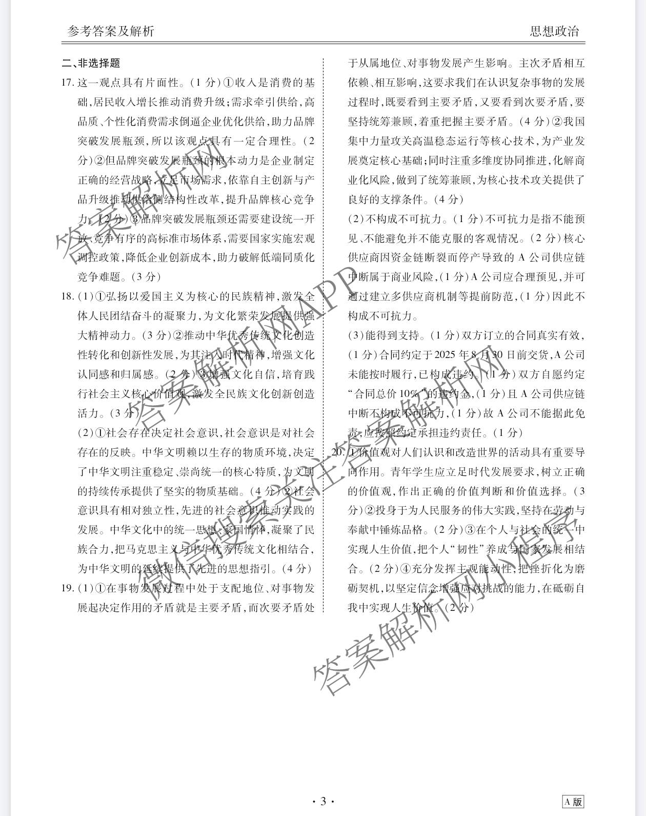 - 衡水金卷广东省2025-2026学年(高二)年级1月份自测政治(A)答案