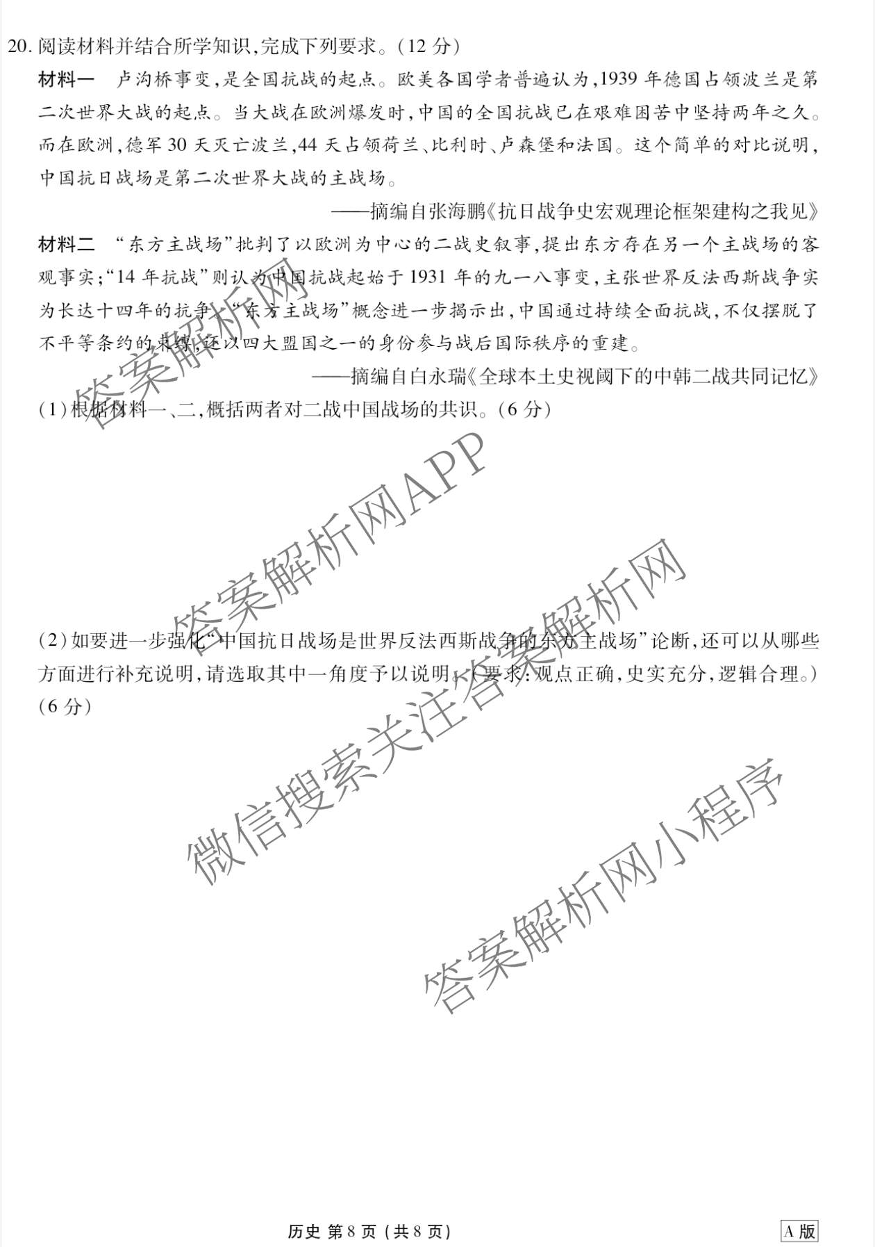 衡水金卷·广东省2025-2026学年高二年级1月份自测历史(A)试题,目前衡水金卷先享题答案网已经汇总了衡水金卷·广东省2025-2026学年高二年级1月份自测历史(A)试题的各科答案和试卷,获取更多衡水金卷先享题答案解析,请在关注本站。