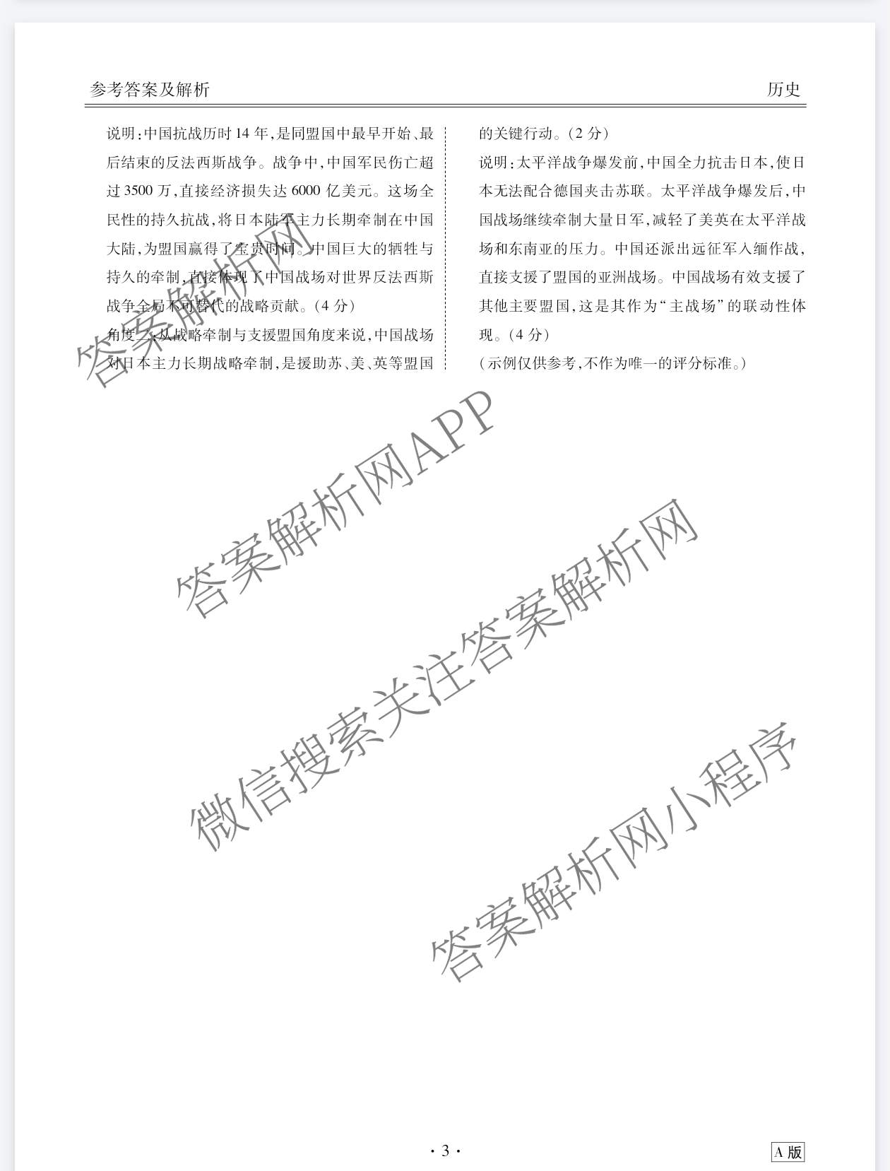 - 高二衡水金卷广东省2025-2026学年年级1月份自测历史(A)答案