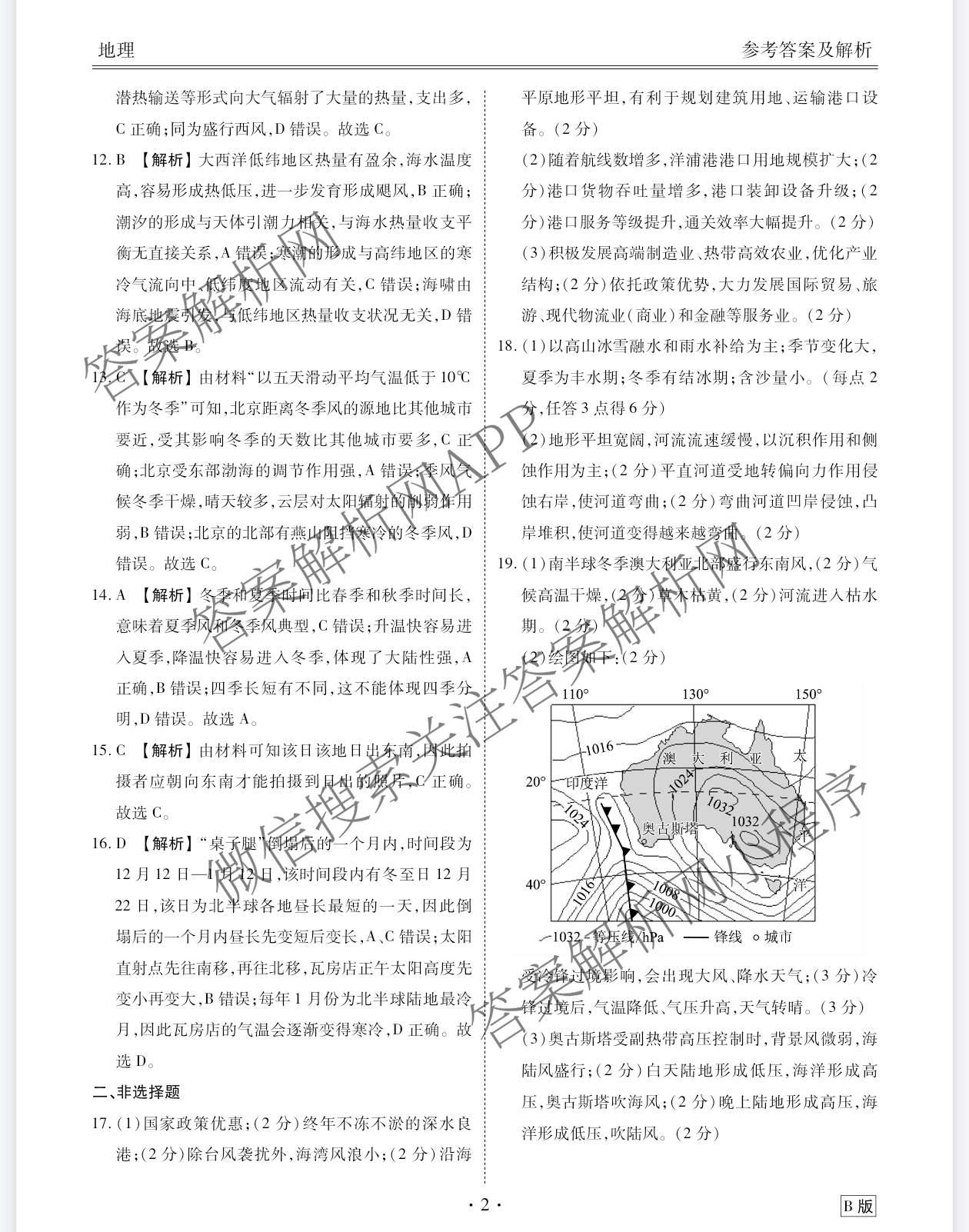 - 衡水金卷广东省2025-2026学年[高二]年级1月份自测地理(B)答案