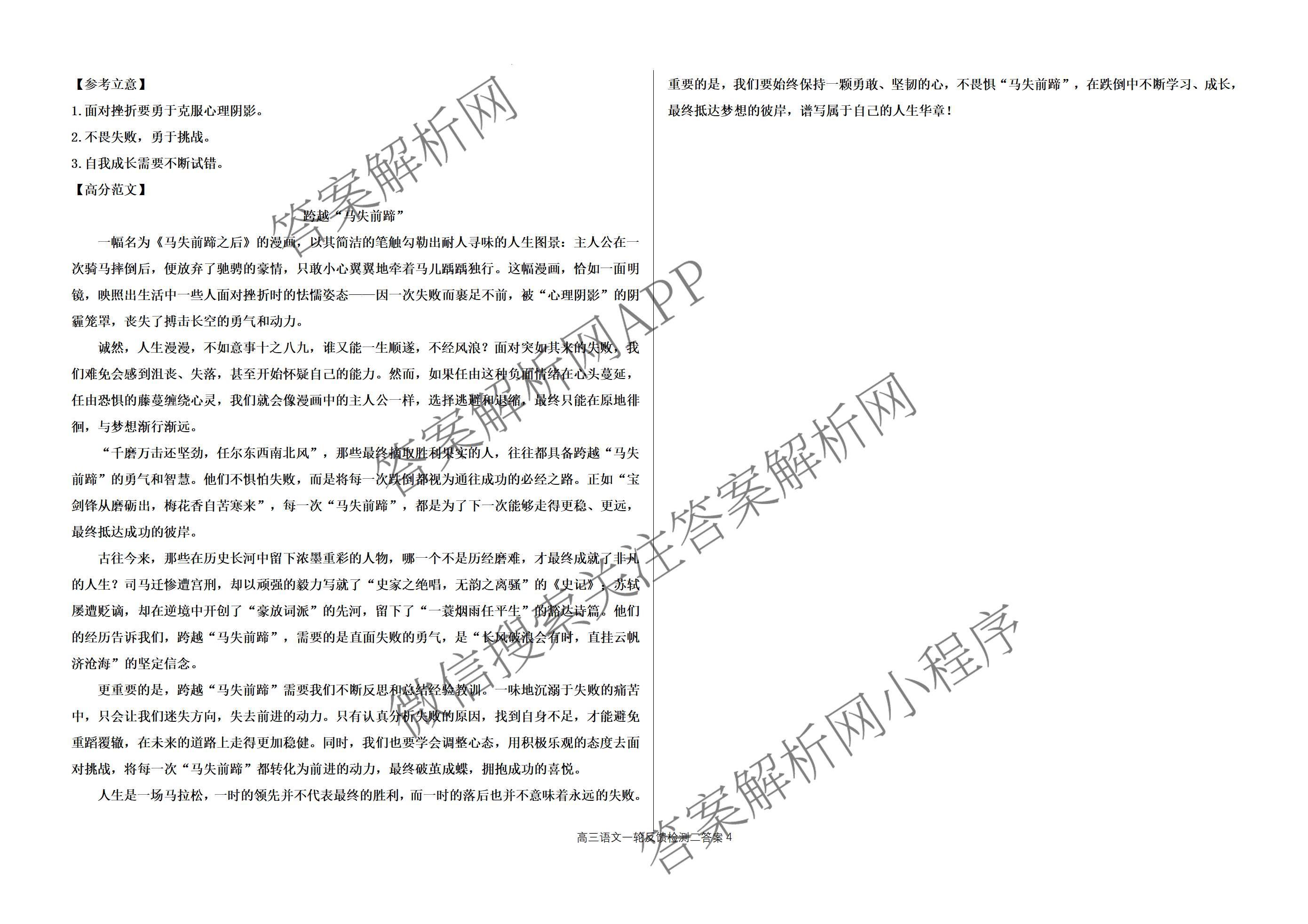 - [高三]河北省衡水市冀州中学2025-2026学年上学期一轮反馈检测(二)语文答案