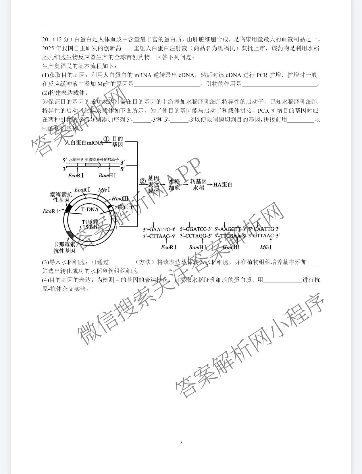 成都七中2025-2026学年度上期高2026届期末考试高三(02.06)生物试题,目前衡水金卷先享题答案网已经汇总了成都七中2025-2026学年度上期高2026届期末考试高三(02.06)生物试题的各科答案和试卷,获取更多地方模拟答案解析,请在关注本站。