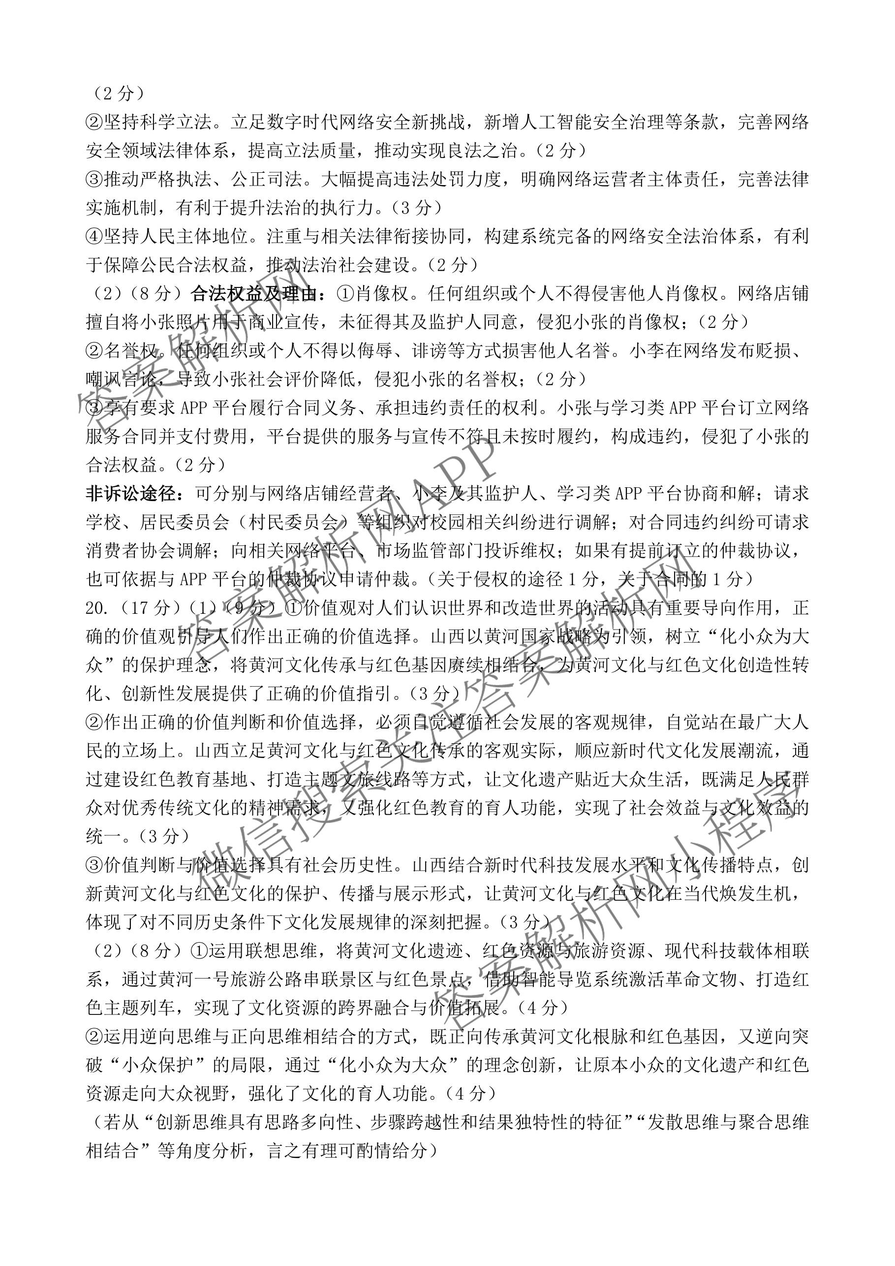 - [高三]山西省临汾市年级2025-2026学年度第一学期期末考试(2月)政治答案